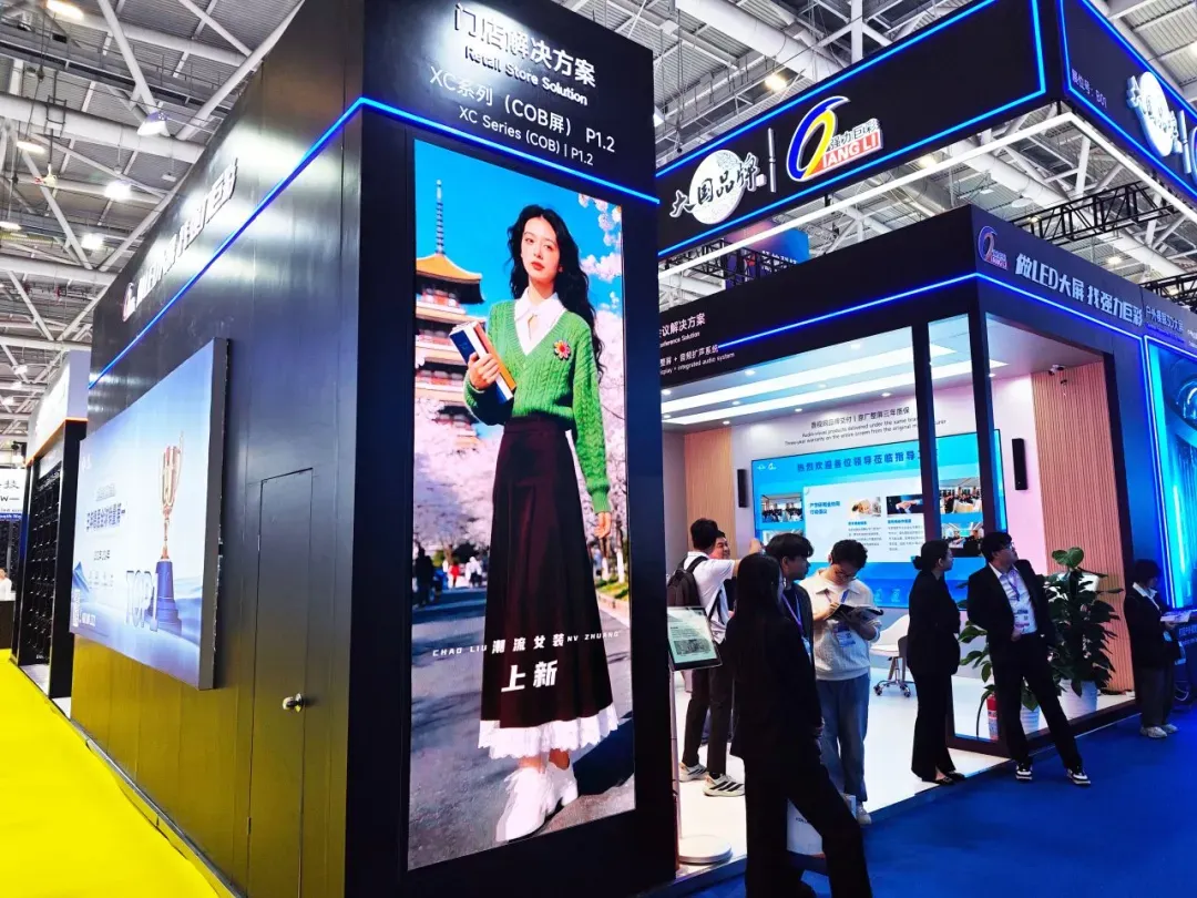 针对商业零售场景,强力巨彩重点展示了 XC系列COB微间距显示屏。该产品采用面光源设计,光线柔和,具备10000:1的高对比度,能细腻展现商品细节。其屏幕表面硬度高,防刮耐划,且支持湿布直接清洁,侧重于提升门店视觉吸引力并降低长期维护成本。