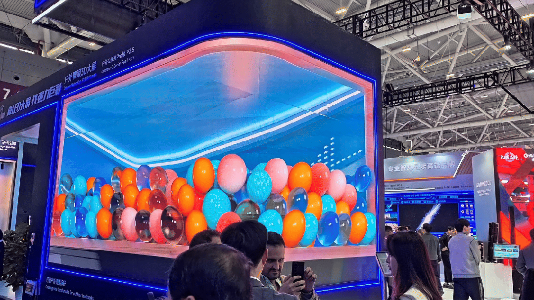 户外显示方面,现场搭建的裸眼3D大屏视觉效果突出。该屏幕采用 户外Q Pro系列 产品,拥有5000cd/m²的高亮度和7680Hz的刷新率。其采用的4.2V低压供电设计,较传统方案节能约30%。