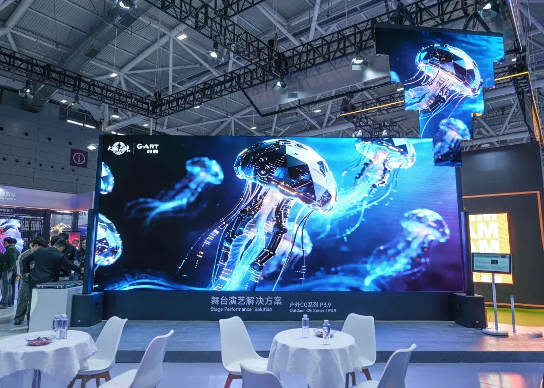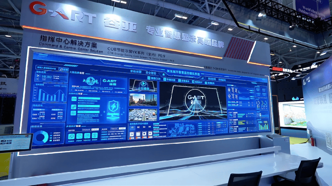 此外,面向专业领域,谷亚还展出了用于舞台租赁的 户外CG系列快装屏,以及主打低功耗、高稳定性的 COB节能冷屏指挥中心解决方案,显示出其在专业细分市场的布局。