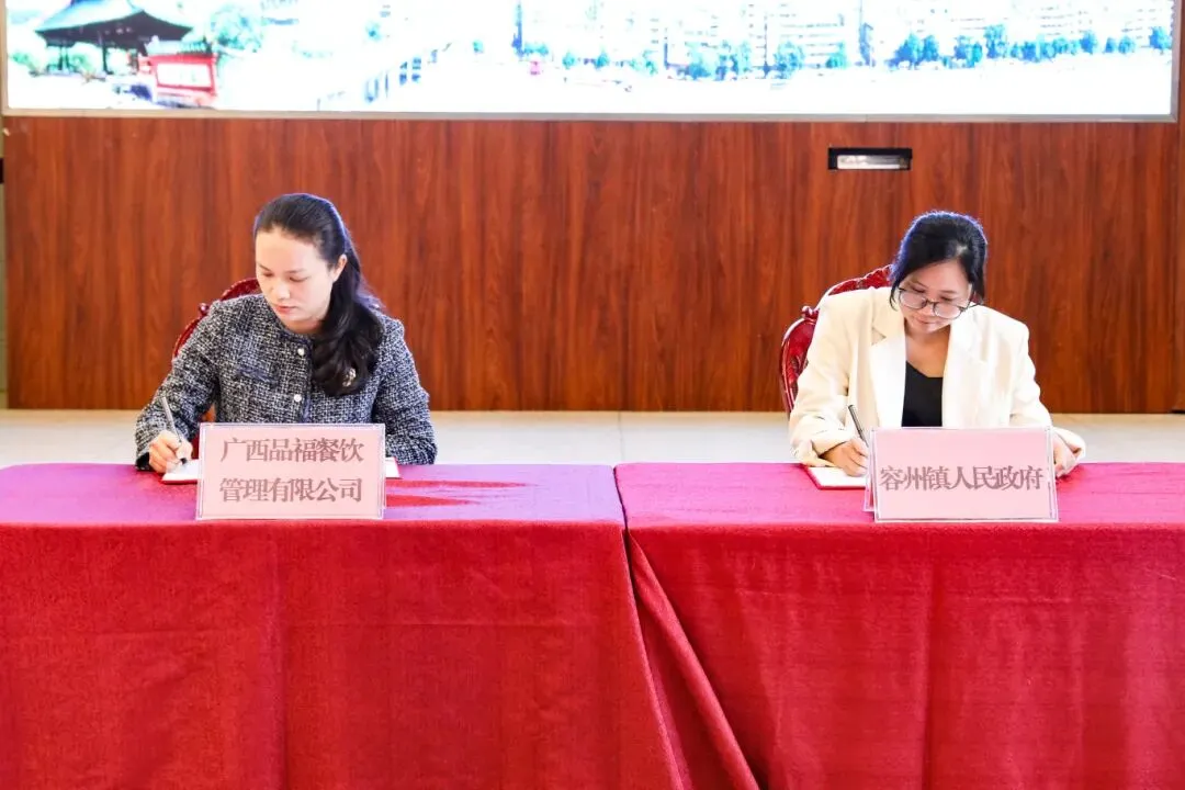 签约仪式上,容州镇人民政府、自良镇人民政府、容县经济开发区管委会分别与广西品福餐饮管理有限公司、广西新民通食品有限责任公司、广西慧兴智能科技有限公司,签订了容县商业综合体项目、广西自良家调味品智能自动化生产项目、慧链智联•智慧电商产业基地项目。