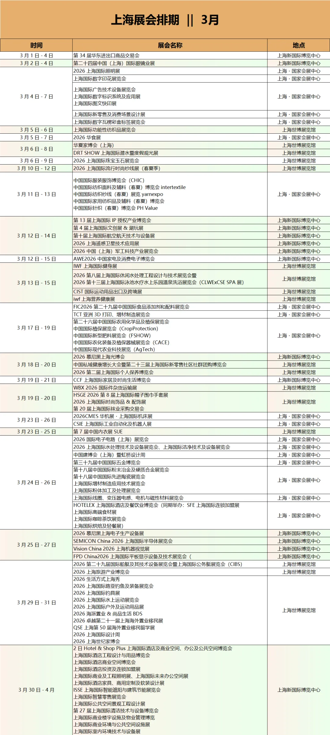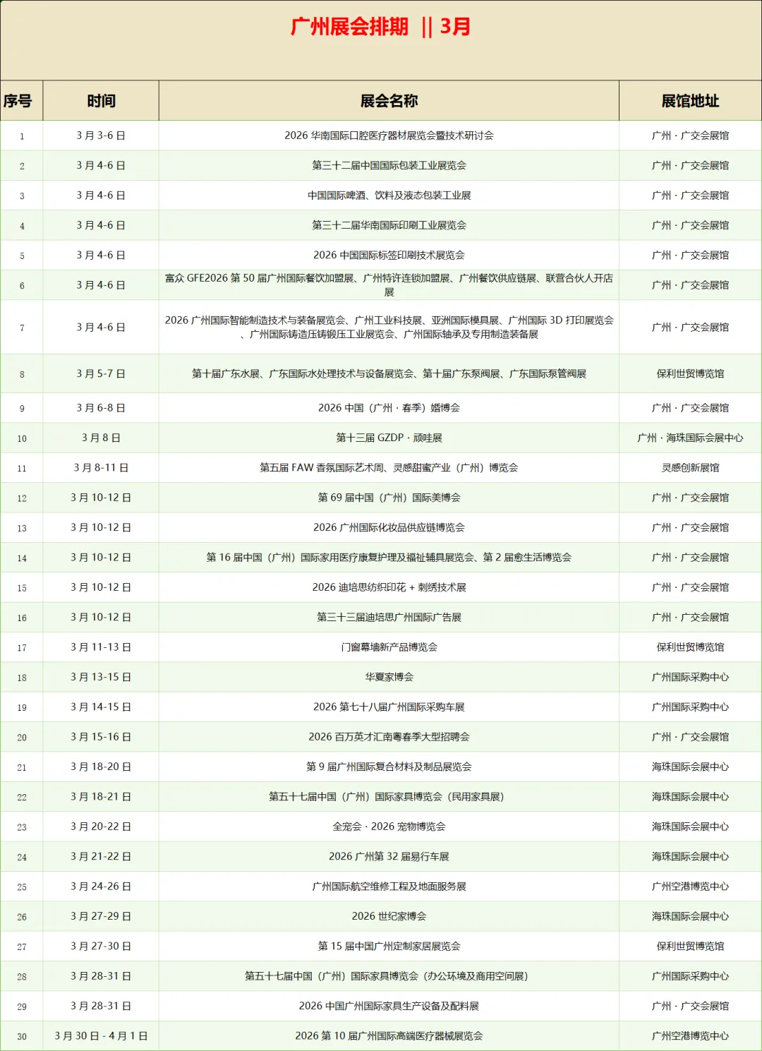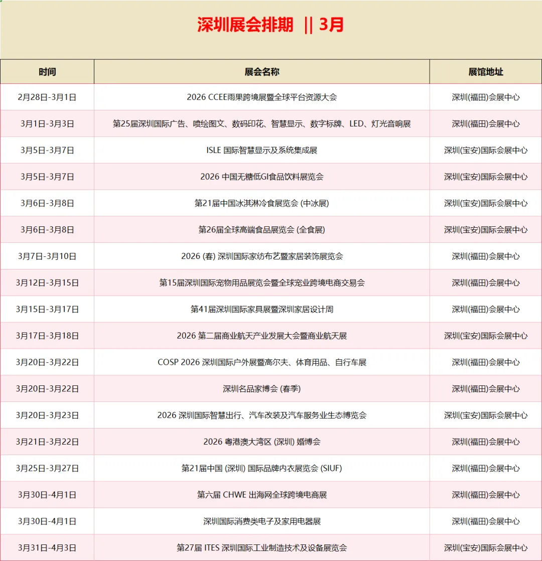 3月展会排期 ‖ 香港 广州 深圳 上海,4大城市 (包含展会名称时间展馆地址)