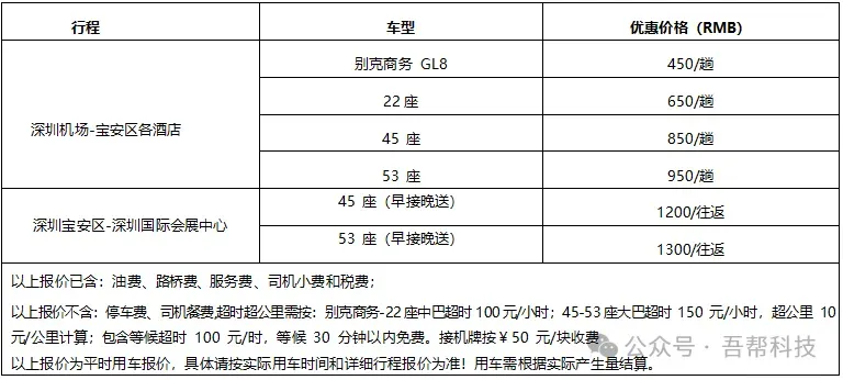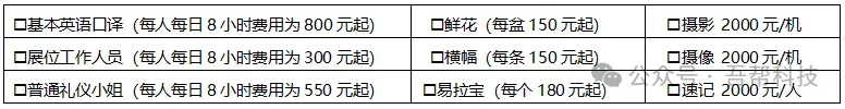 以下价格已包含15%服务费及税项、含展期酒店至展馆早接晚送免费往返巴士,所有费用将以人民币结算。