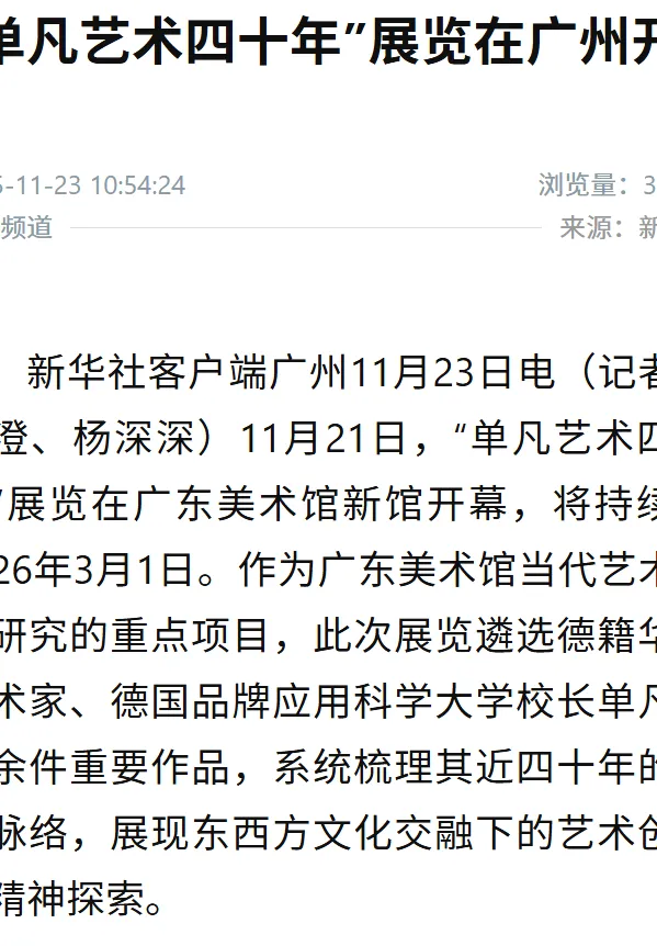 学术定位重磅,个案研究标杆:作为广东美术馆当代艺术个案研究重点项目,以文献 + 作品双线互文,系统梳理单凡 1984 年赴德以来四十年完整创作脉络,学术含金量拉满。