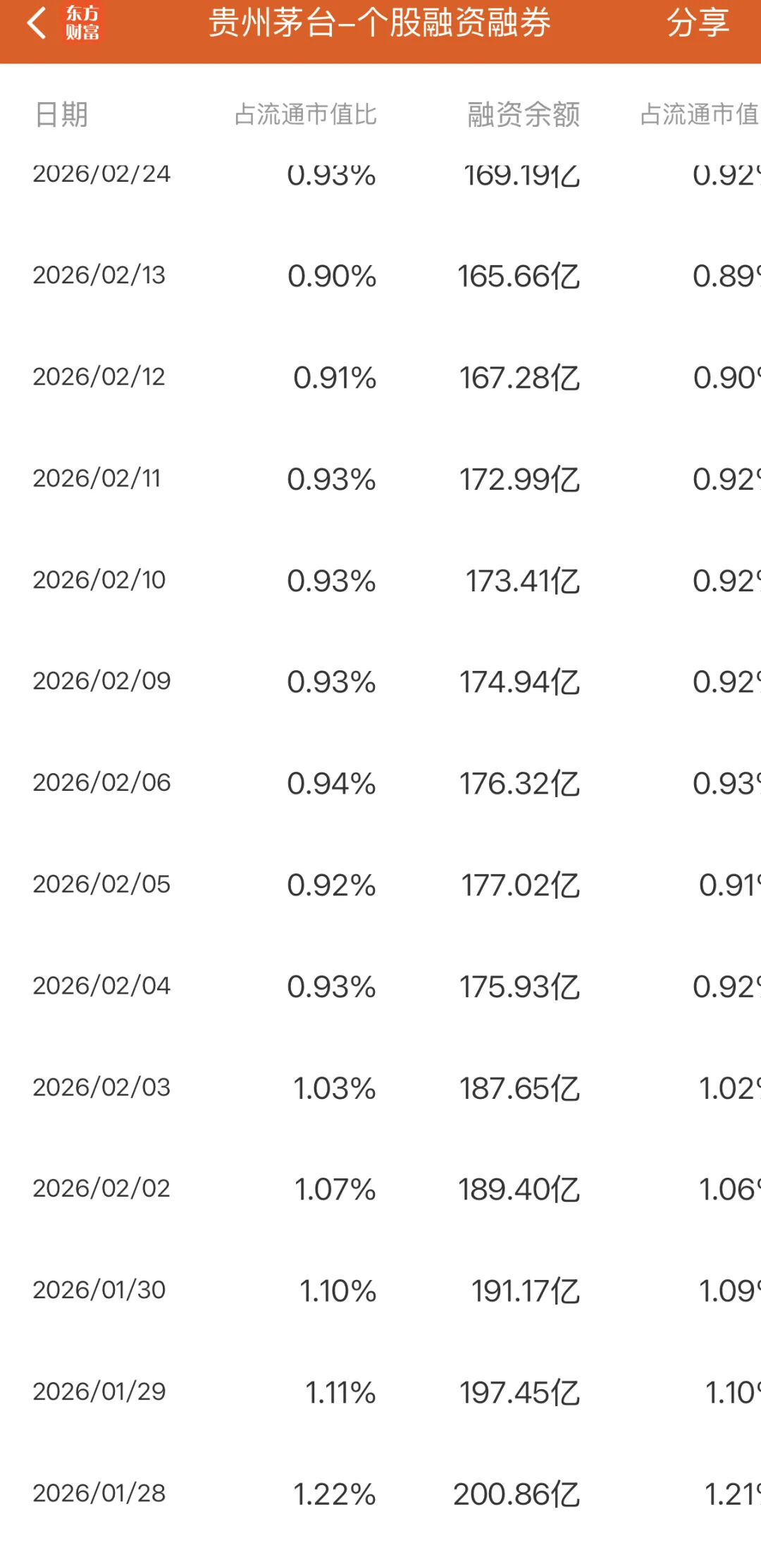虽然茅台股价之前创过九个月的新高,但数据显示,融资余额(也就是杠杆资金)在持续大幅流出。“聪明钱”在借反弹离场。