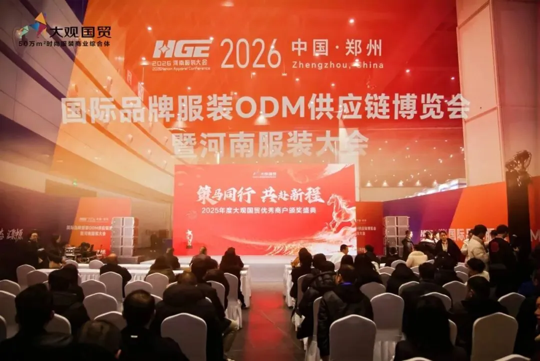 3月6日,郑州国际会展中心客商云集、人流如织,国际品牌服装ODM供应链博览会暨河南服装大会在这里盛大启幕!同日下午,“策马同行 奔赴新程”——大观国贸2025年度优秀商户颁奖典礼在会展中心服装会议区璀璨举行!
