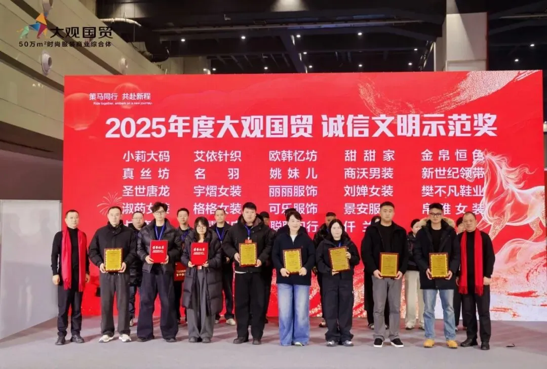 谈及获奖,高艳磊言语笃定:“入驻大观五年来,我们在诚信经营、品牌积淀上有了自己的积累。这份荣誉不仅是肯定,更是一份责任,时刻提醒我把所图做得更好,不辜负客户的信任,也不辜负大观这份长情的陪伴。”他特别提到,此次亮相河南服装大会并拥有专属展位,正是大观为商户搭建的宝贵平台。