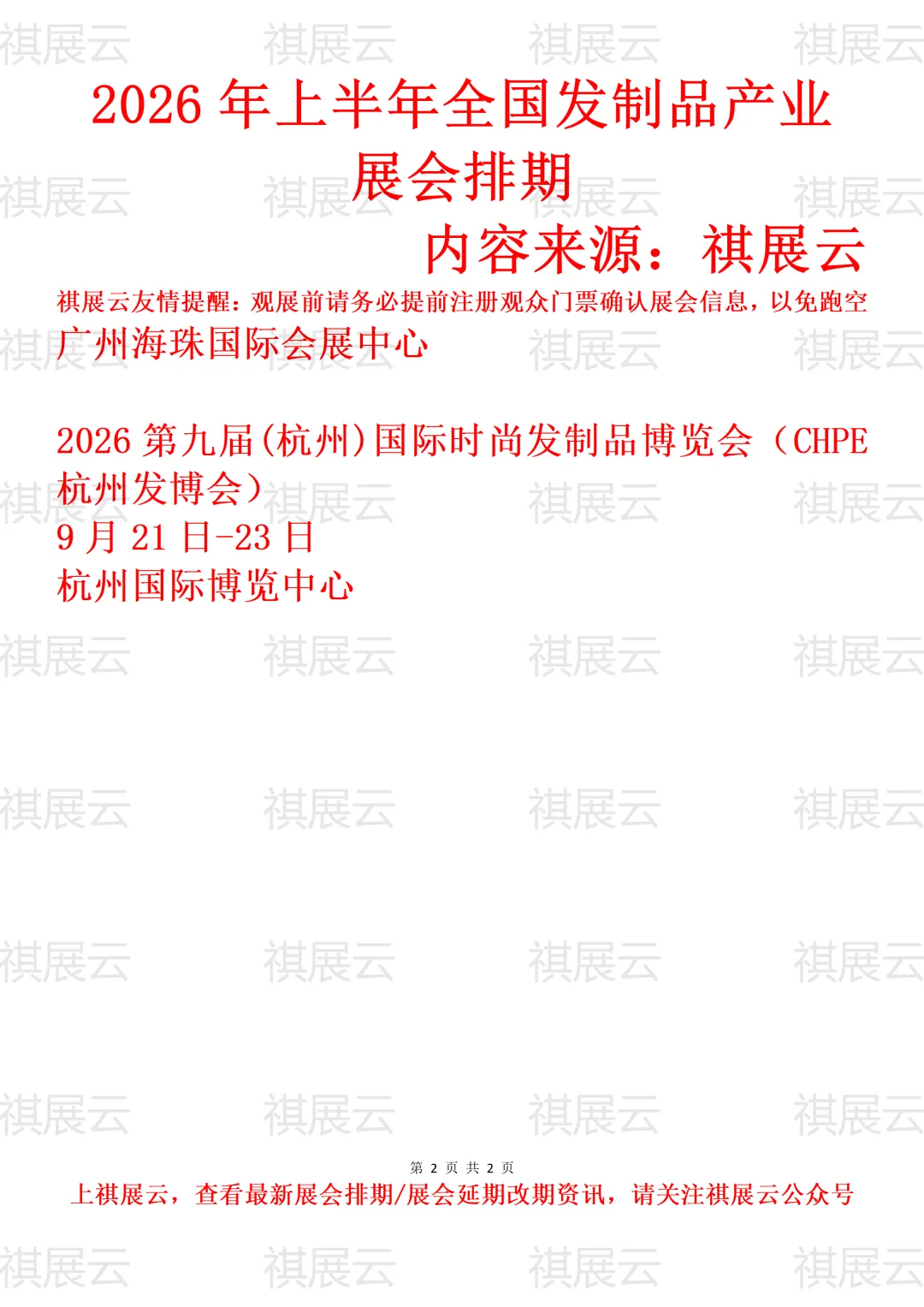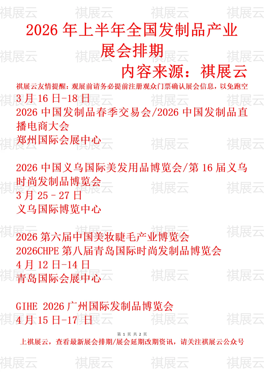 会展资讯丨全国发制品/假发制品展会2026年上半年展会时间表
