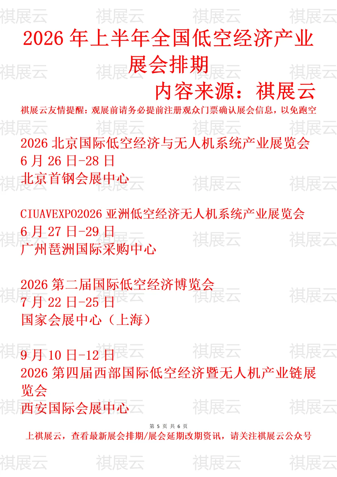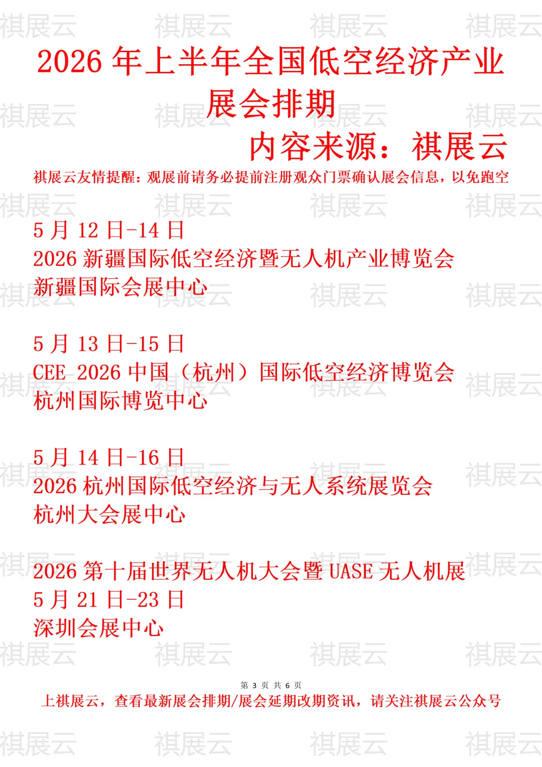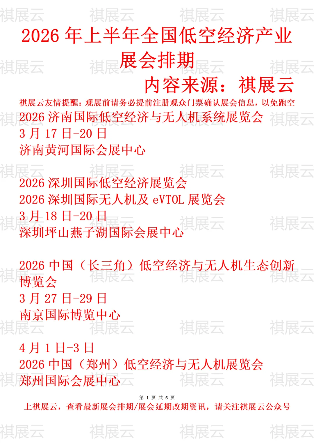 会展资讯丨全国低空经济/无人机展会2026年上半年展会时间表