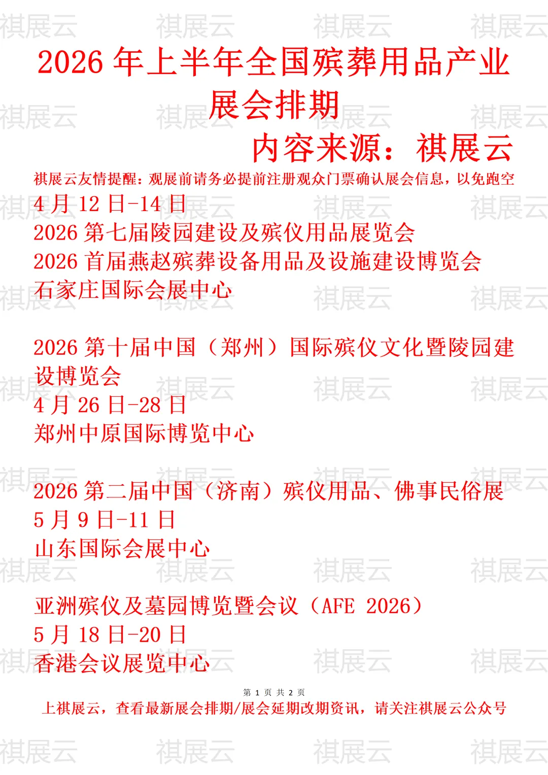 会展资讯丨全国殡葬殡仪/陵园墓地展会2026年上半年展会时间表