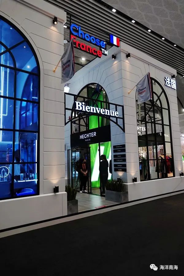 法国再次以国家馆形式参加本届消博会,带来了包括欧莱雅、梦特娇等十五个享有盛誉的法国品牌,涵盖了美容、时尚、生活艺术、食品和葡萄酒烈酒等领域,整体展馆外形沿用了法国国家品牌Choose France的标志设计。