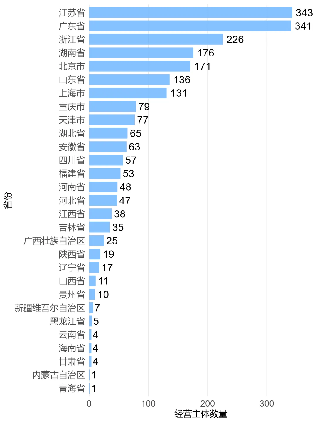 西部和东北地区企业数量偏少:四川、福建、河北、河南等处于中游,形成一定产业规模;新疆、黑龙江等多地企业不足10家,内蒙古、青海仅1家,产业基础薄弱,发展空间广阔。
