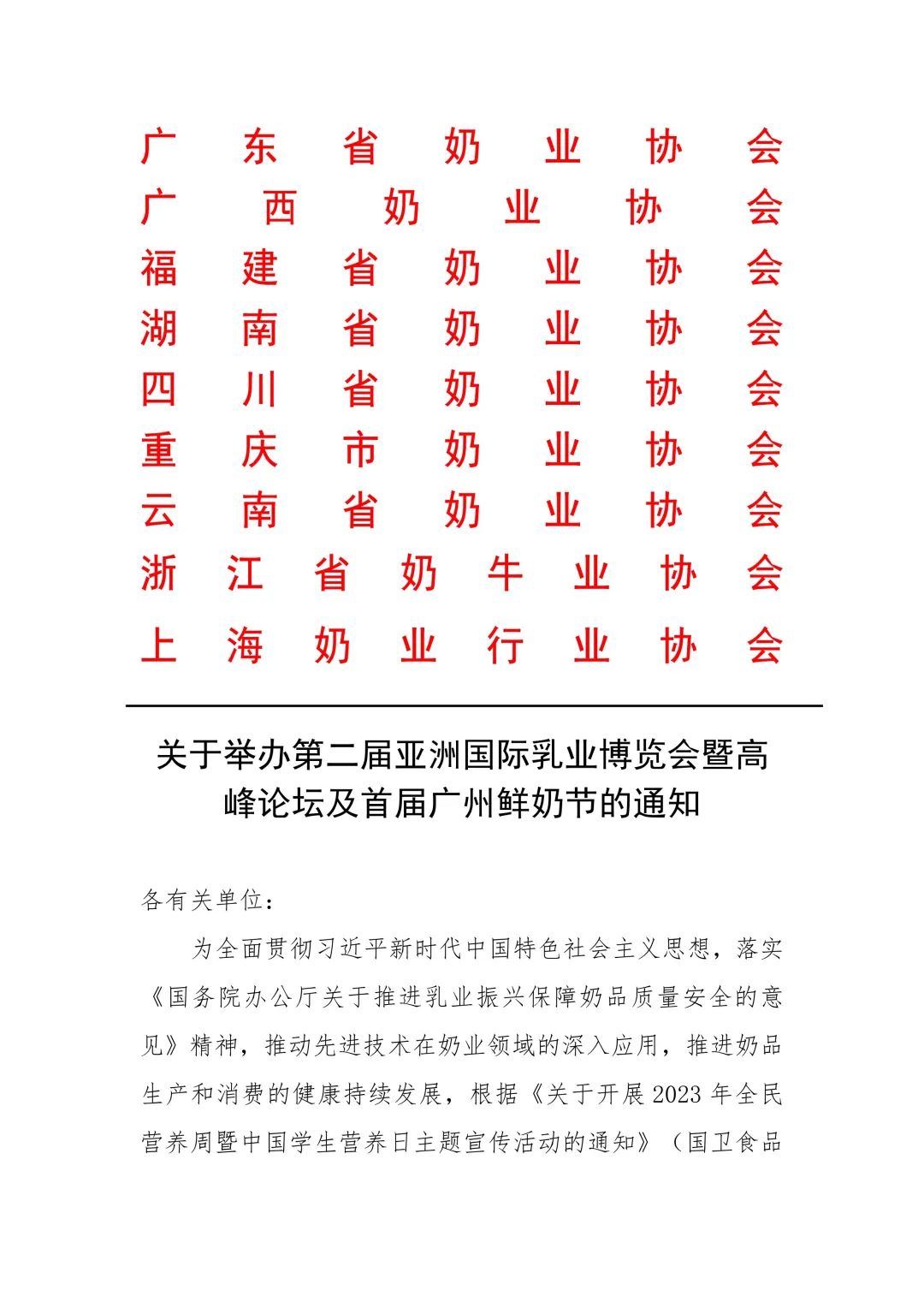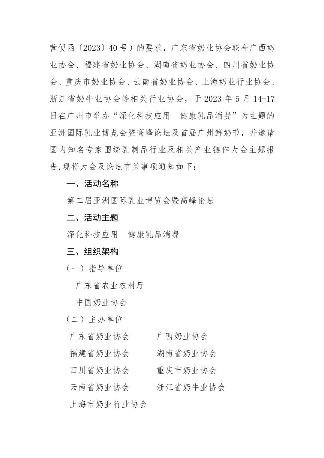 关于举办第二届亚洲乳博会暨高峰论坛及首届广州鲜奶节的通知