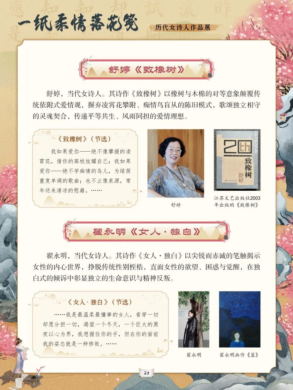 中华优秀传统文化是中华民族的精神命脉,是涵养社会主义核心价值观的重要源泉。在中国文学的璀璨星河中,历代女诗人以独特的生命体验与文学才情,为这条精神命脉注入了温润而坚韧的力量。她们挣脱时代的束缚,以诗为言、以笔为心,将闺阁情思、家国之念与觉醒之志凝于笔墨,书写了中华文脉中不可替代的璀璨华章。