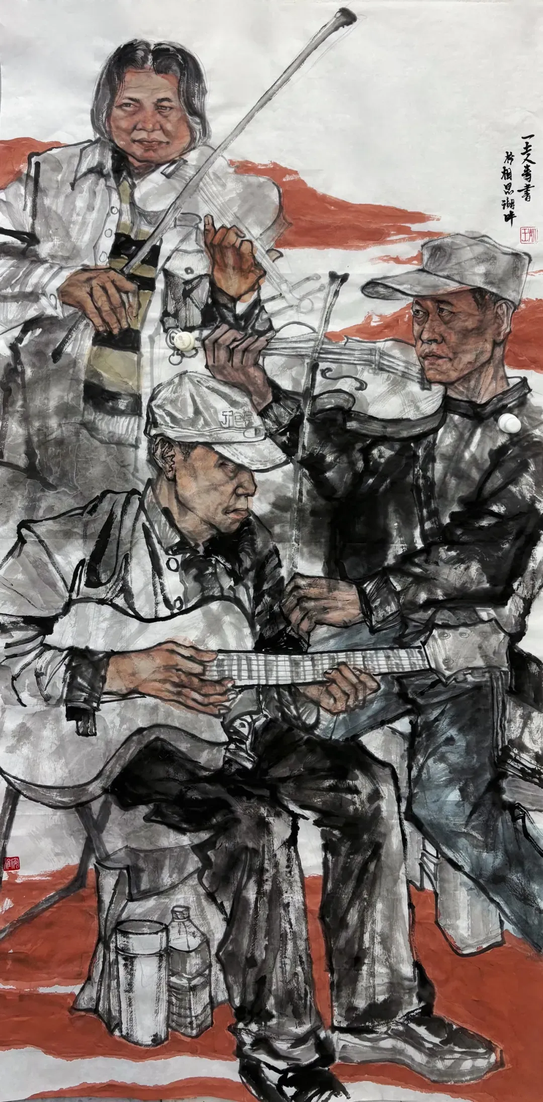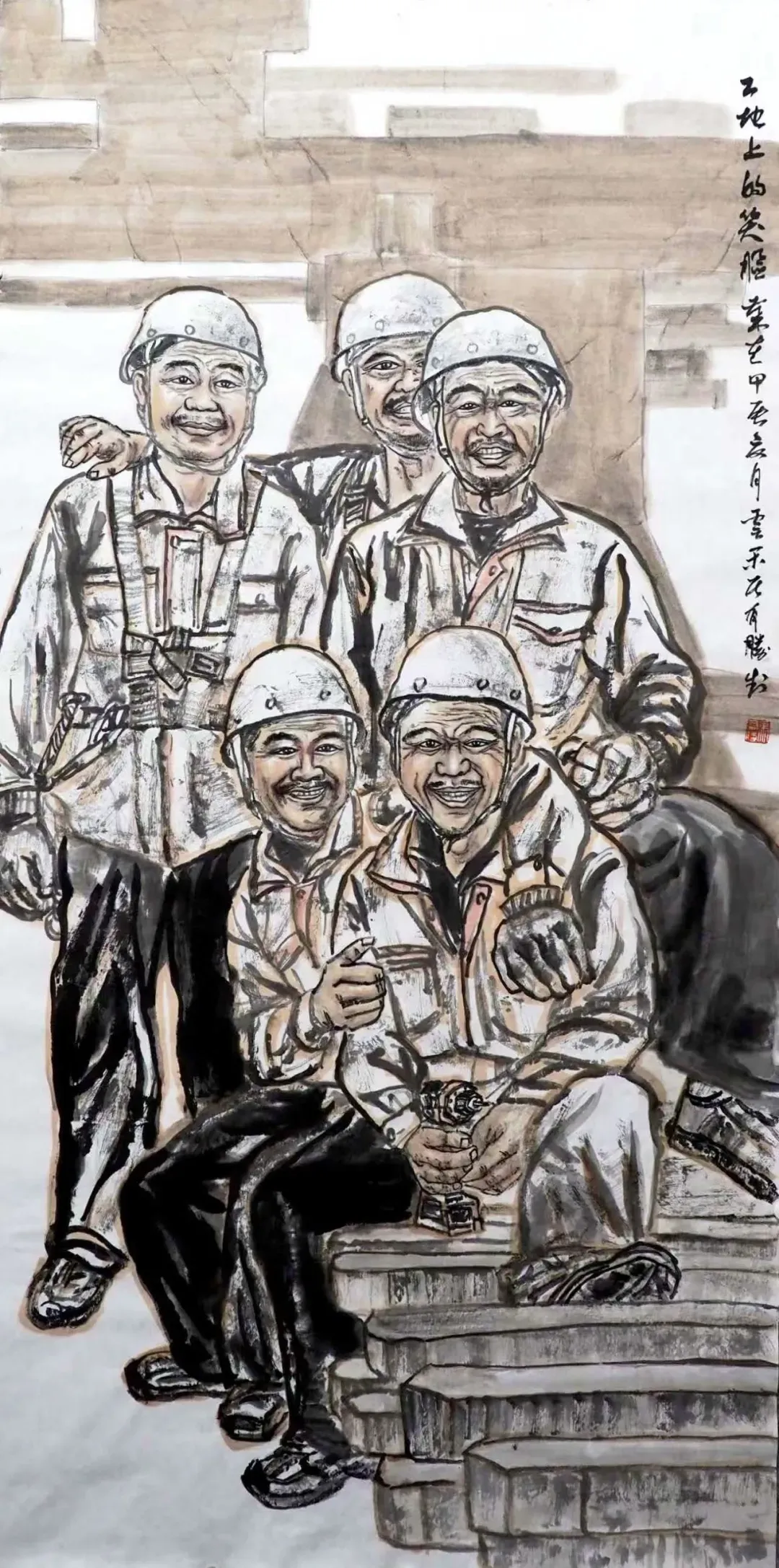 马有胜《工地上的笑脸》国画