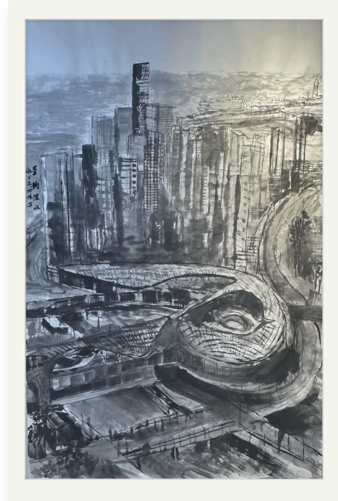 朱柳杨《墨韵滨江》国画