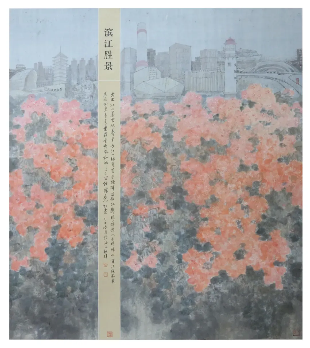 李秋伟《滨江胜景》国画