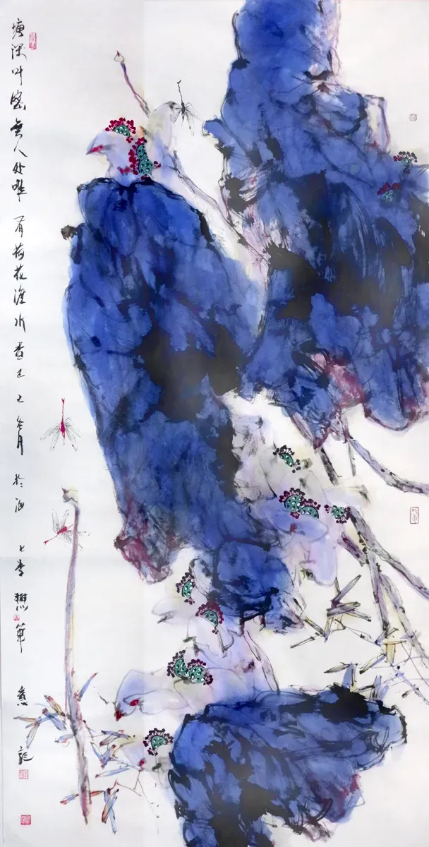 李慧《塘深叶密无人处,唯有荷花渡水香》国画