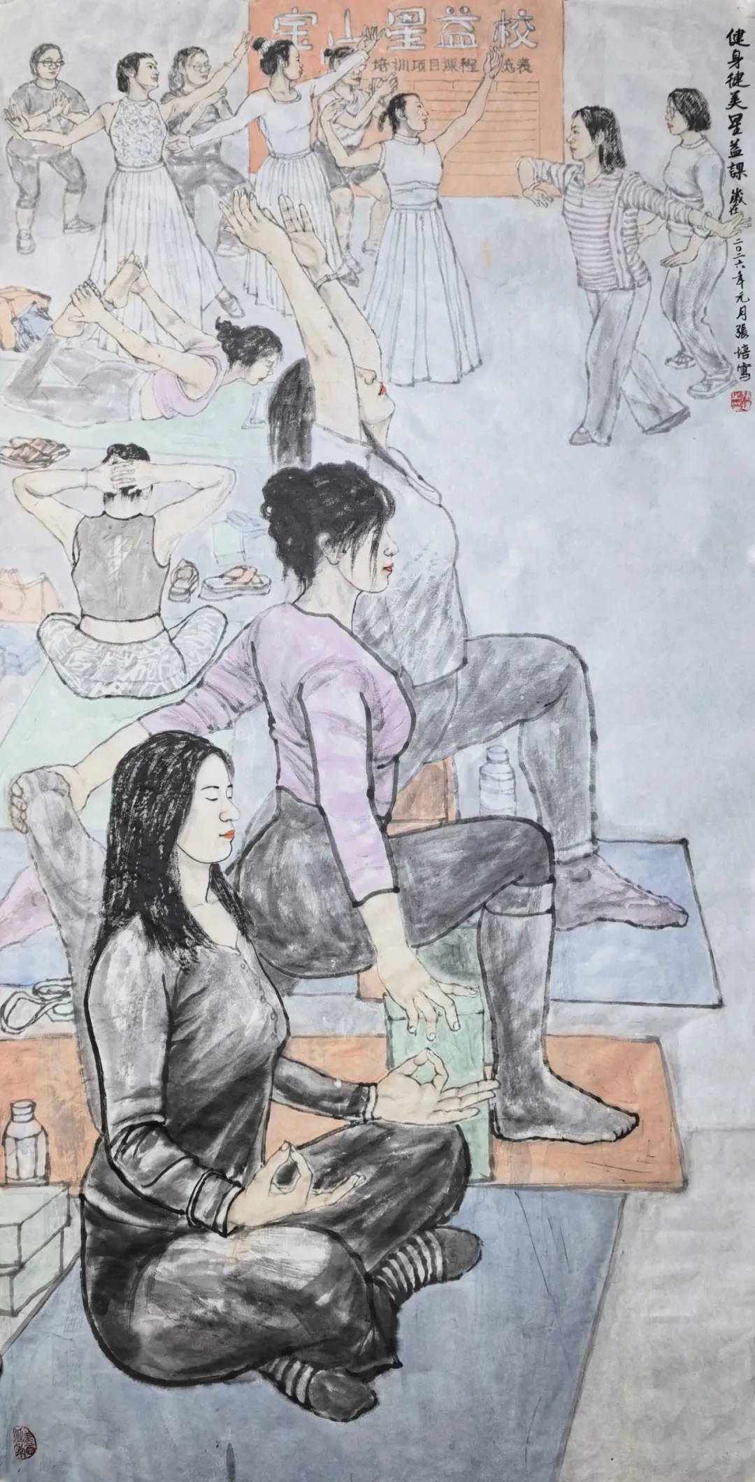 张培《健身健美星益课》国画