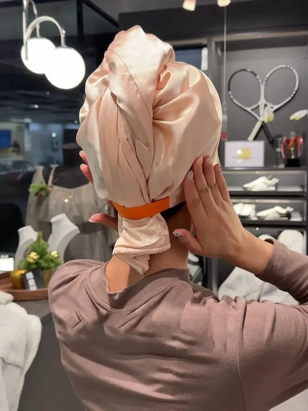 缎面质感尽显贵气,双层蚂蚁布吸水超强,裹一会儿头发即半干,兼具抑菌功能。洗头后顺手一裹,解放双手又省时✔️