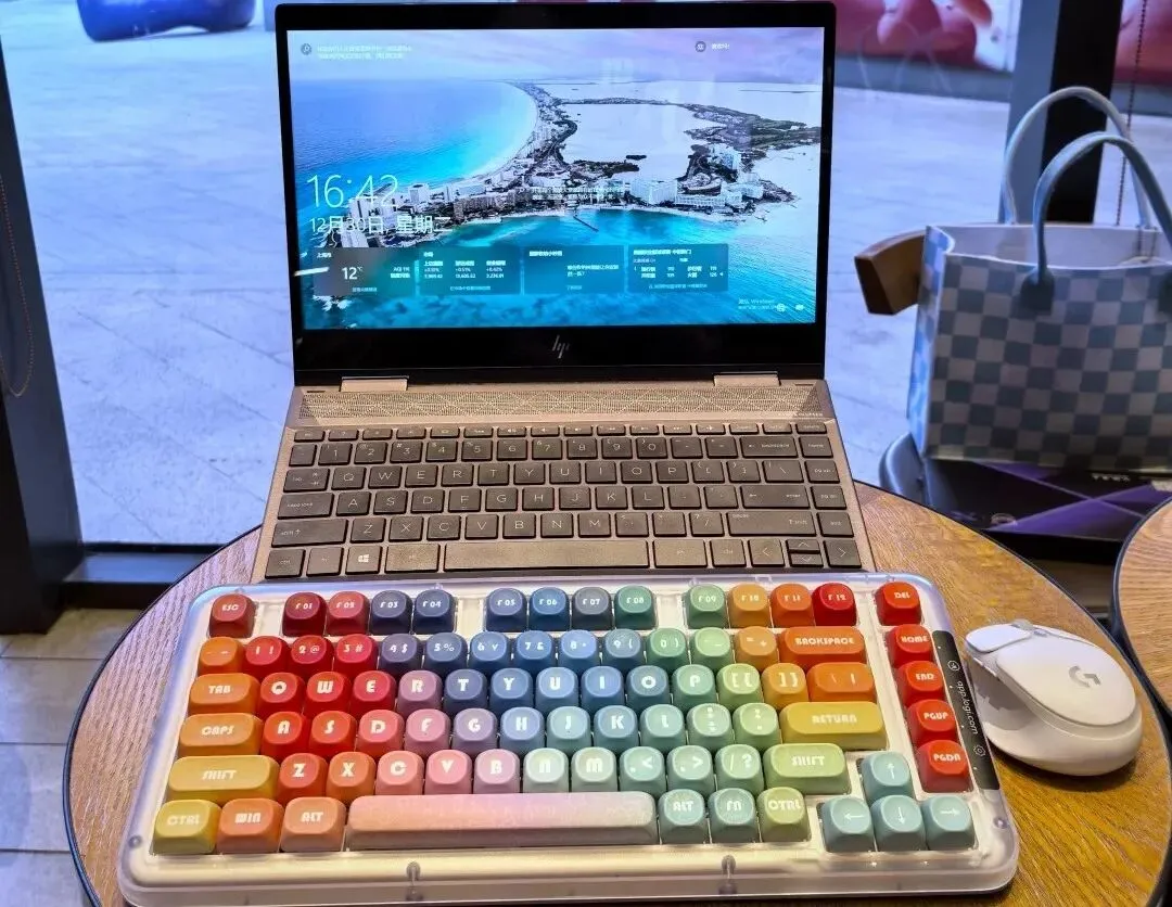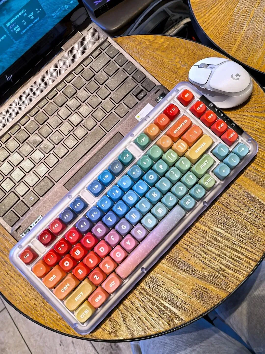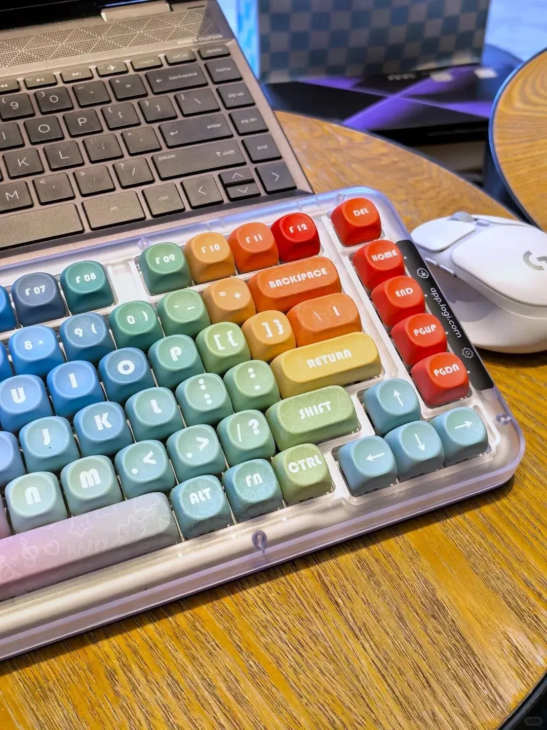 每天面对灰蒙蒙的办公桌和拥挤杂乱的桌面,上班的热情总在瞬间消散……直到遇见【罗技K75M彩虹键盘】,星暮紫的半透外壳搭配“多巴胺”彩虹键帽✨