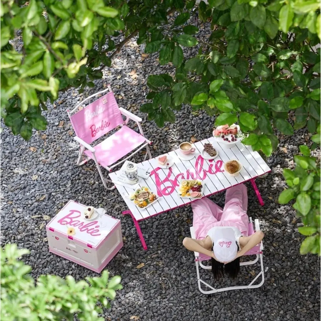 粉色从不代表软弱?它承载着温柔而坚韧的力量。露营季,带上原始人芭比系列桌椅套装?,奔赴一场自由肆意的户外撒野~