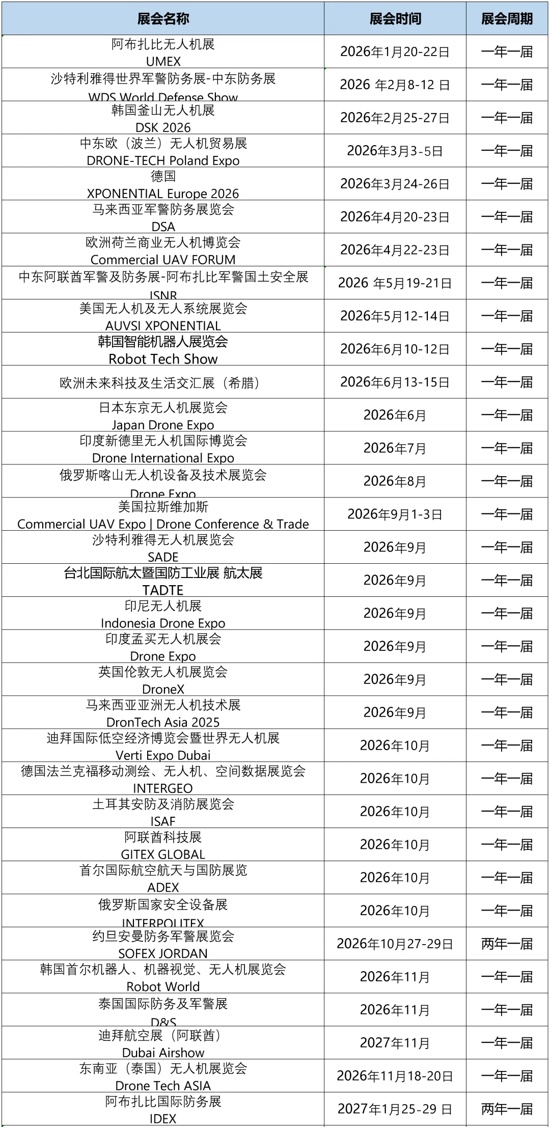 2026年全球无人机展会计划表