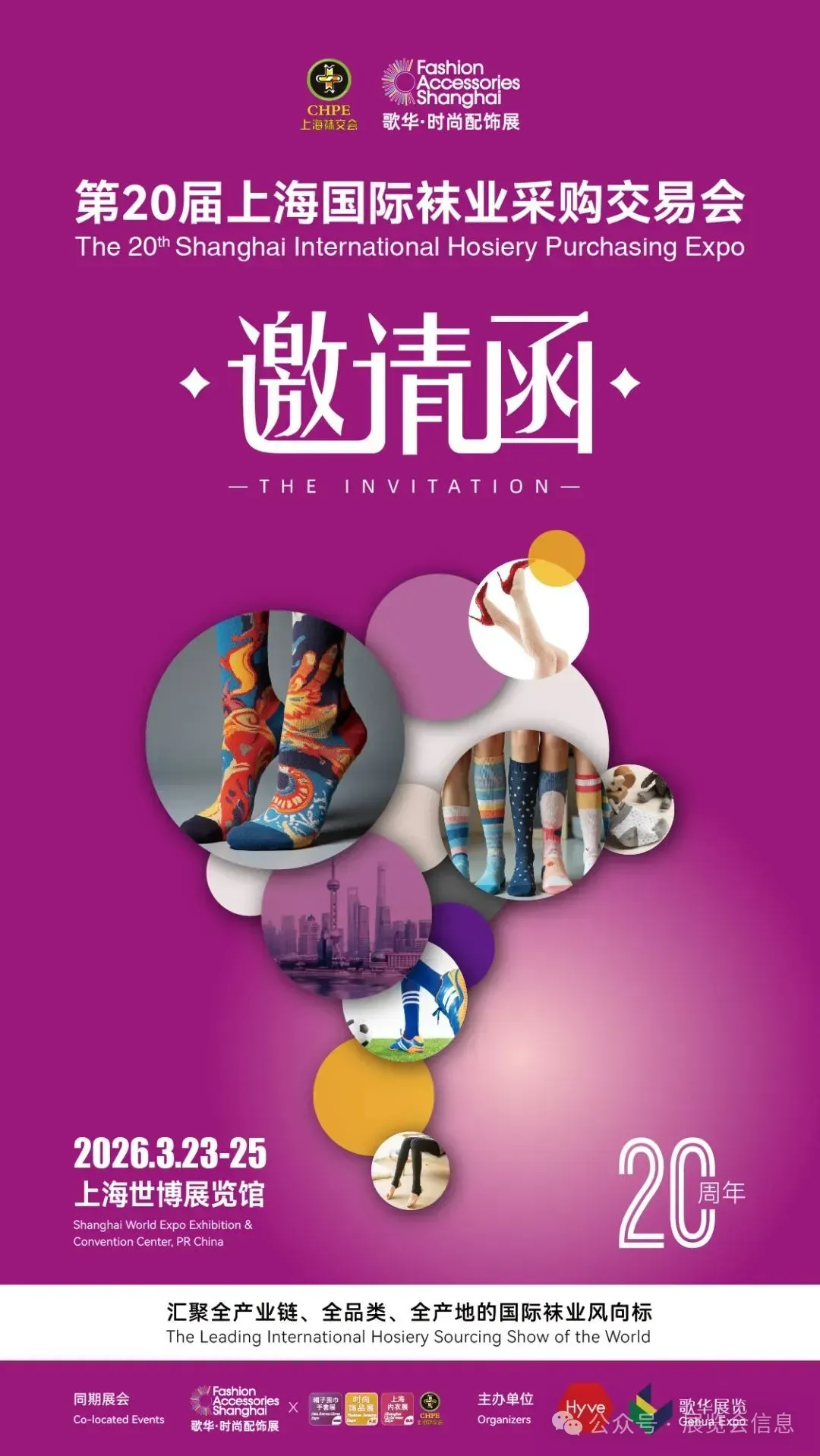 每年3月,上海袜交会吸引着近三万名专业买手和采购商前来观摩展会。2026年,上海袜交会将迎来20周年,主办方将持续深耕织袜产业,并且为链接更多样化的各类时尚配饰产业链优质资源,满足一站式订货采购需求,届时展会将联合歌华展览旗下:上海国际帽子围巾手套展、上海国际内衣展览会、上海国际时尚饰品展共同开启Fashion Accessories Shanghai 2026上海国际时尚配饰展(简称:歌华·时尚配饰展)。该活动以供应链为基础,聚焦穿着搭配的潮流趋势发展,集多个系列时尚领域专业的细分展会于一体,多维度整合优势资源,为来自世界各地的买手及行业人士搭建一个促进商贸对接与合作的商业平台。
