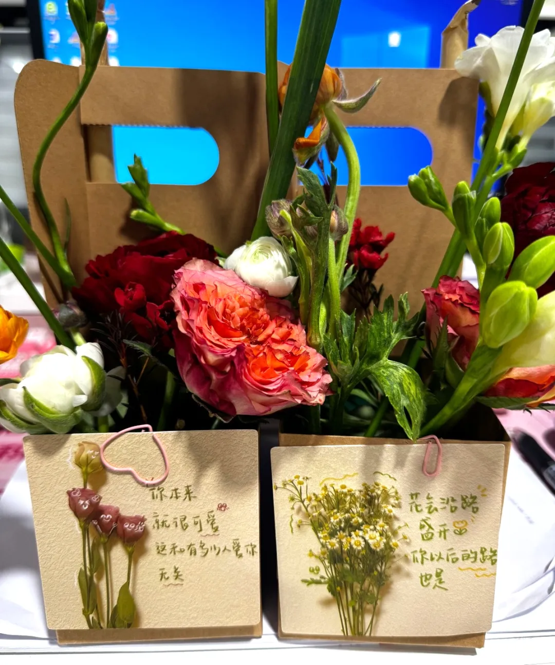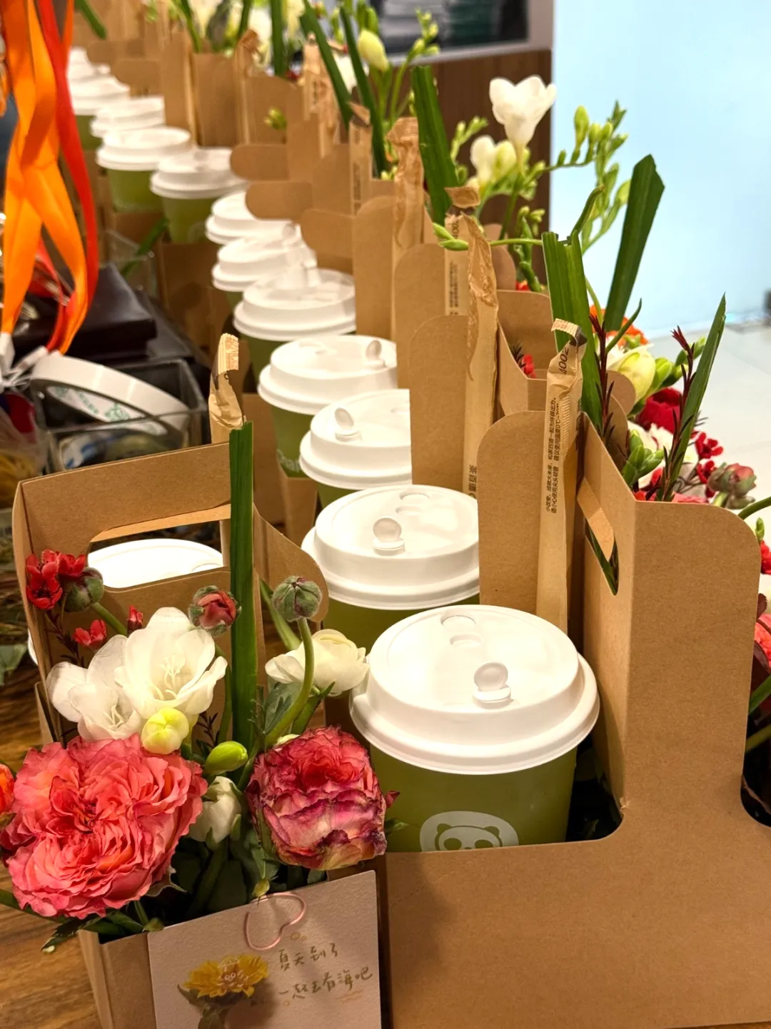 为了感谢公司女性职工一直以来的辛勤付出与默默奉献,前方会展集团人事部早早筹备,精心为大家准备了节日惊喜。娇艳欲滴的鲜花,象征着女性如花般绽放的美丽与坚韧;一杯杯暖心的奶茶,则寓意着生活的甜蜜与温热。
