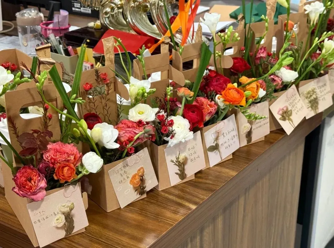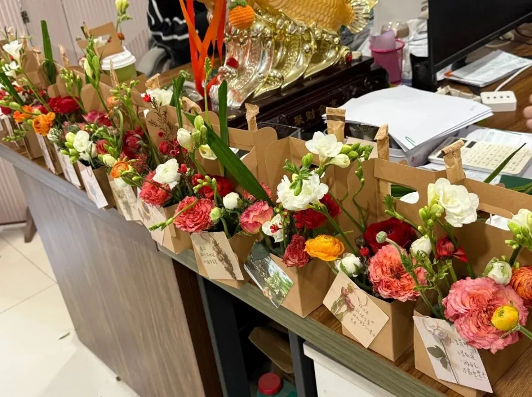 当这份载满心意的礼物送到每一位女同事手中时,大家的脸上都绽放出了幸福的笑容。这一份份礼物,不仅是节日的仪式感,更是公司对“她力量”的尊重与肯定。在忙碌的工作间隙,这份突如其来的“小确幸”,让办公室充满了欢声笑语,也让大家感受到了前方会展大家庭满满的关怀与温暖。