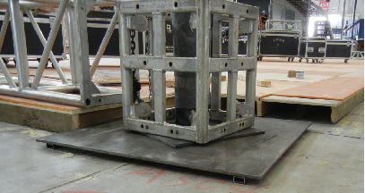 第一种是立柱天棚。天棚上的音箱、灯具等承载物与Truss架的规格(截面尺寸)成正比,与立柱的跨度成反比,结构工程师要根据承载物的重量计算后,选用适当规格的Truss架和立柱跨度。