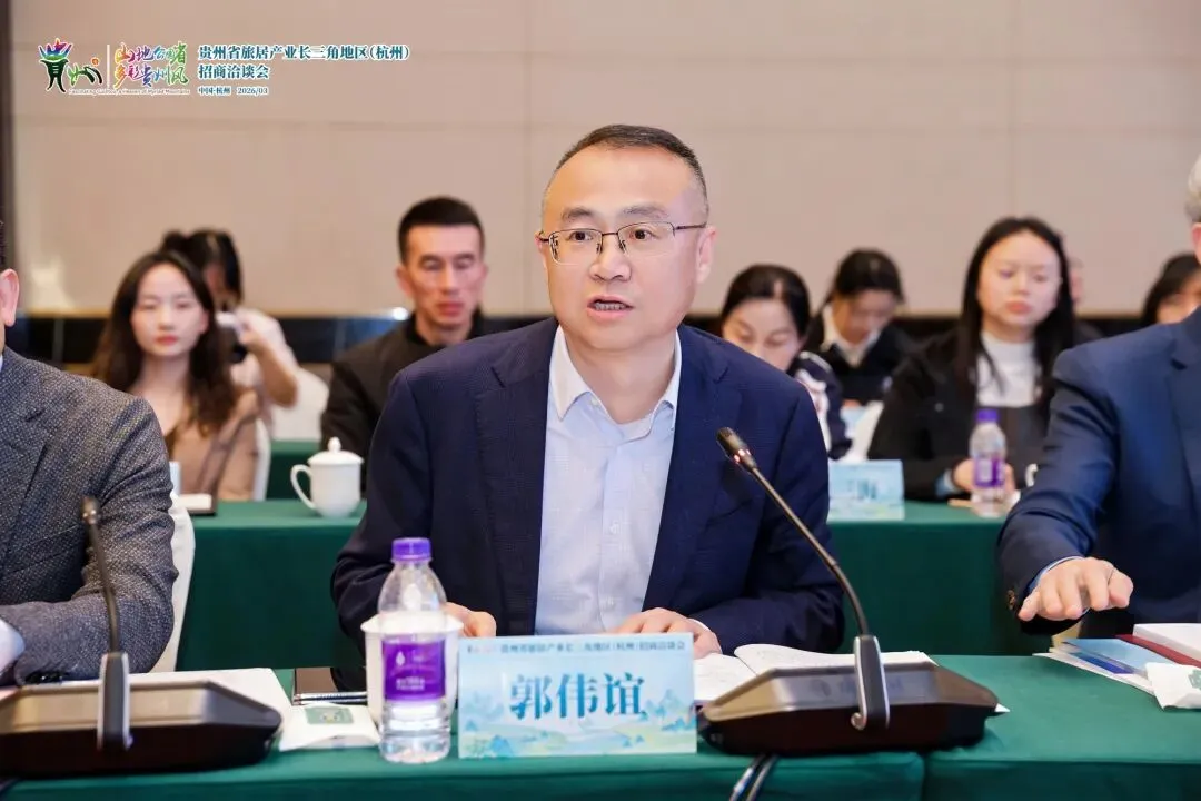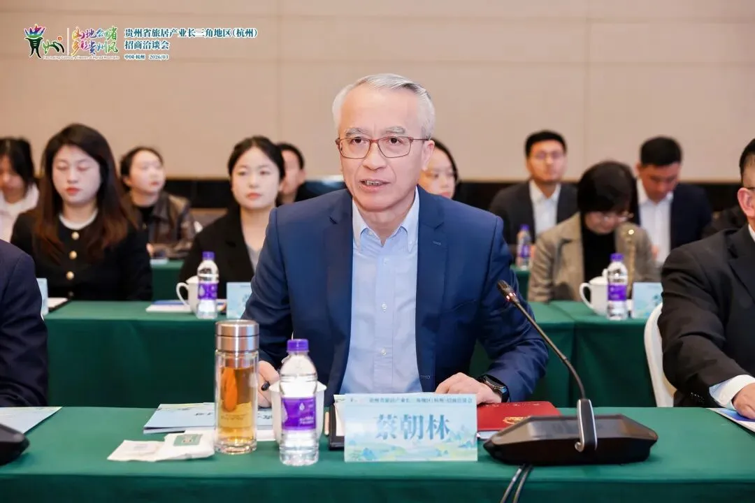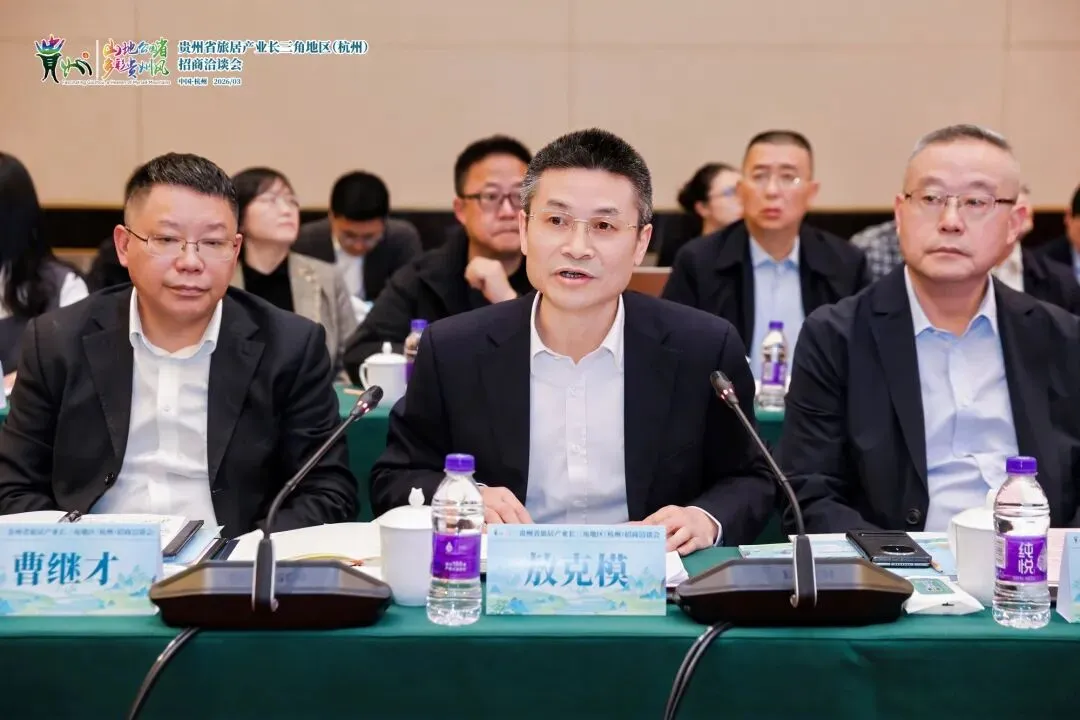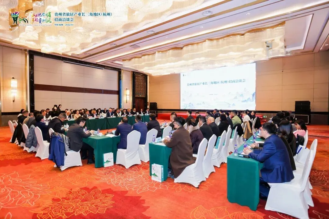 2026年3月5日,贵州省旅居产业长三角地区(杭州)招商洽谈会在杭州成功举办。贵州省人民政府副省长蔡朝林、贵州省政府副秘书长曹继才、贵旅集团董事长郭伟谊、贵州省文化和旅游厅副厅长敖克模、贵州省住建厅总工程师董亚伟、贵州省体育局二级巡视员朱俊华、贵州省政府驻上海办事处主任刘锐、贵州省信息中心主任韩朱旸、贵阳市委常委,副市长雷伯勇、六盘水市副市长香萍、安顺市副市长贺未泓、黔西南州副州长代乐、六盘水市文体广电旅游局局长姚斌、安顺市文体广电旅游局局长范成荣、黔西南州文化体育广电旅游局局长王文波等领导嘉宾出席;贵人居上品牌创始人罗志强博士作为重要嘉宾受邀参会,并就“音乐+文旅+旅居”融合发展与贵州方面进行深度交流。