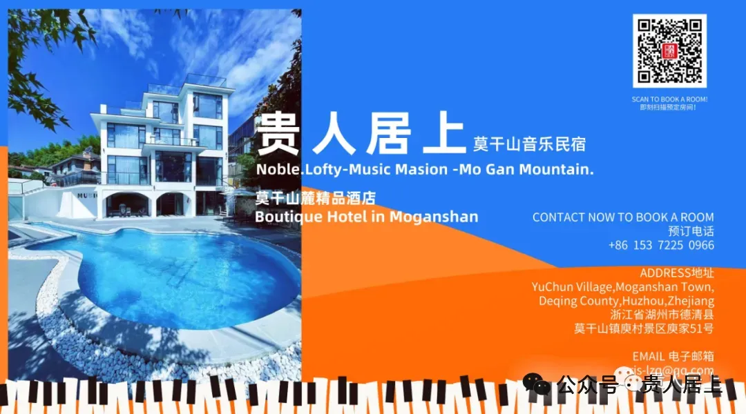 贵人居上品牌公司创立于2011年,常怀感恩之心,常念相助之人,秉持“感恩文化”。贵人居上音乐民宿,以音乐为核心打造沉浸式艺术旅居空间。其创始人与管理团队出身于明星经纪人,借服务艺人的经验资源,把艺术审美、音乐基因注入细节,将艺人级服务融入运营,从接待到体验,定制化服务带来明星般呵护,让客人享莫干山美景、舒适住宿,还能参与音乐创作交流,让旅行变得更有意思,为你开启一段独特的音乐旅居之旅。