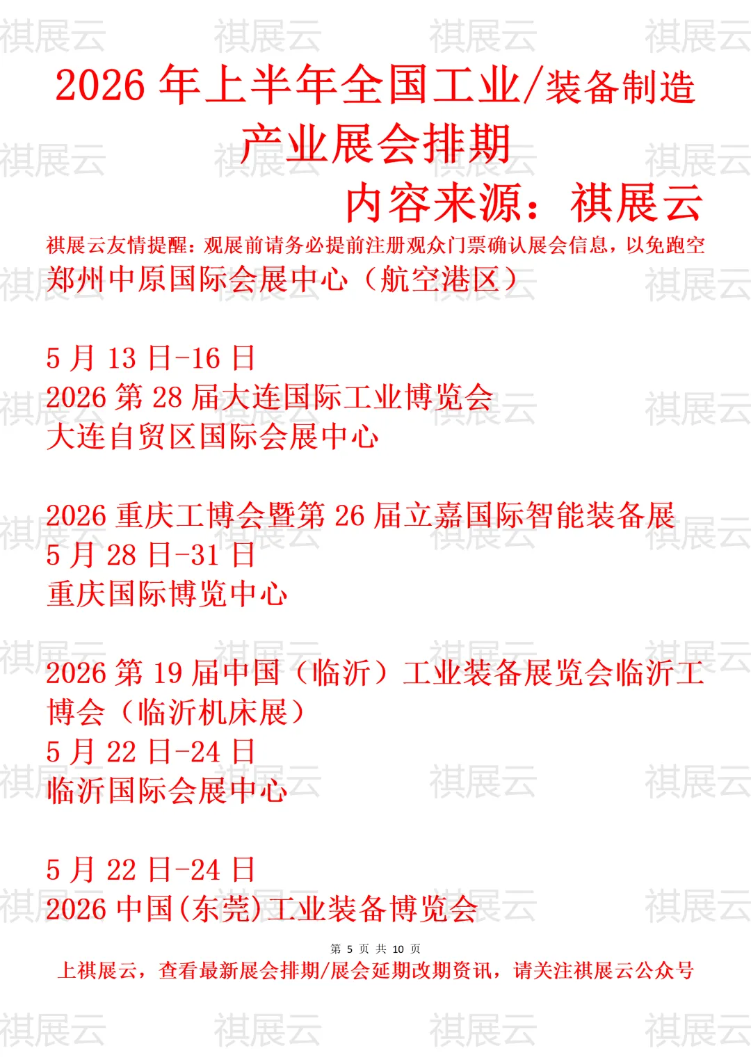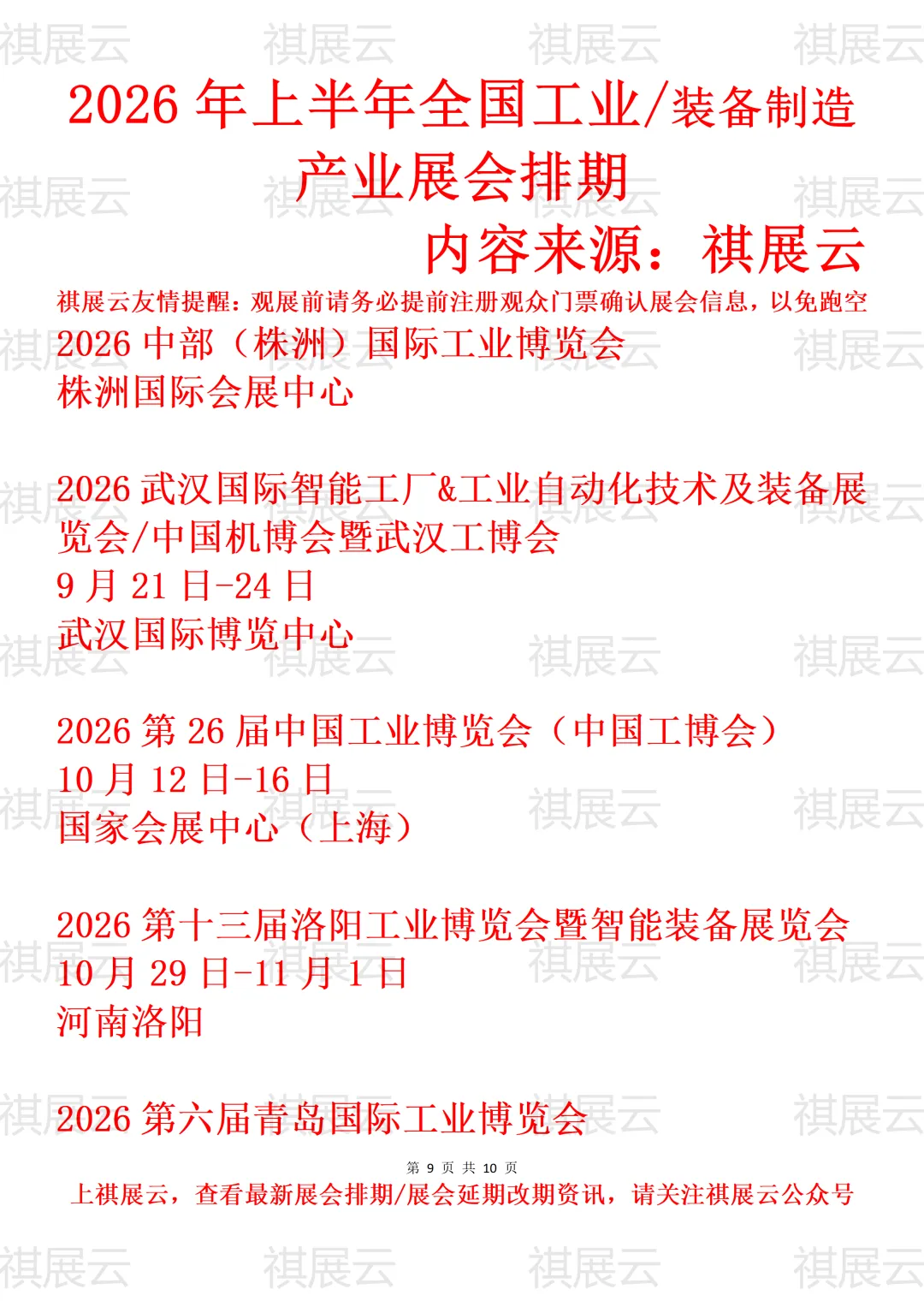 会展资讯丨全国工业/装备制造展会2026年上半年展会时间表