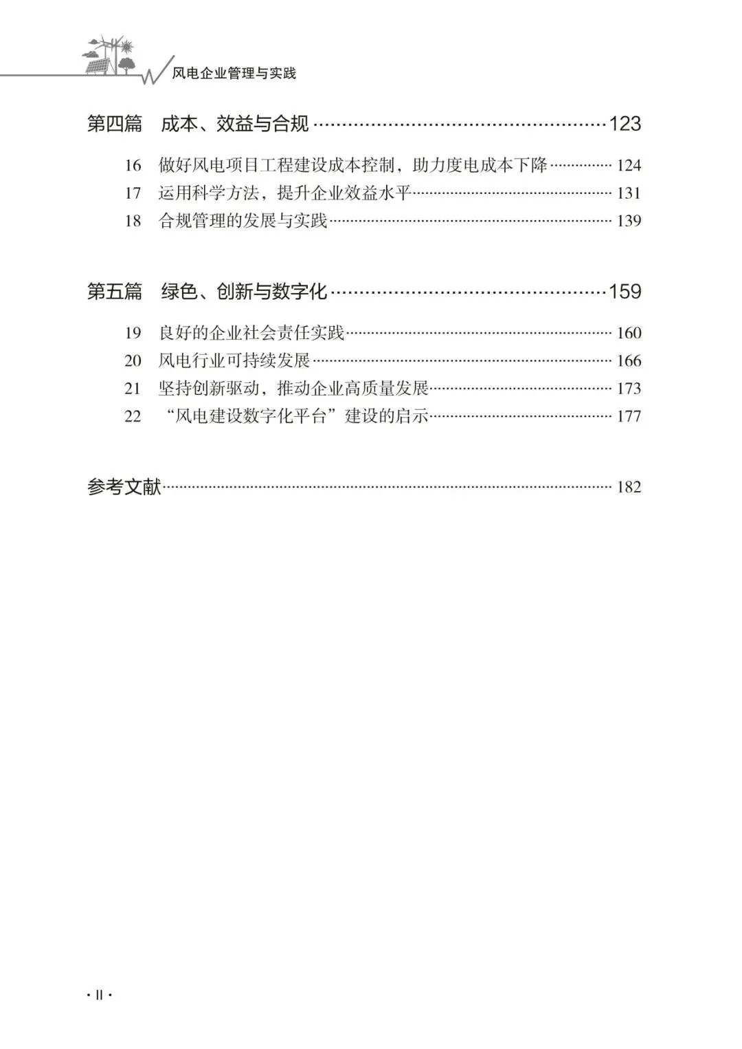 第五篇:聚焦创新实践,不仅探讨企业设计绿色标准体系、推动低碳发展的路径,还对产品创新、组织创新、管理创新进行思考,同时介绍风电行业数字化转型、智能化工程建设的经验与体会。