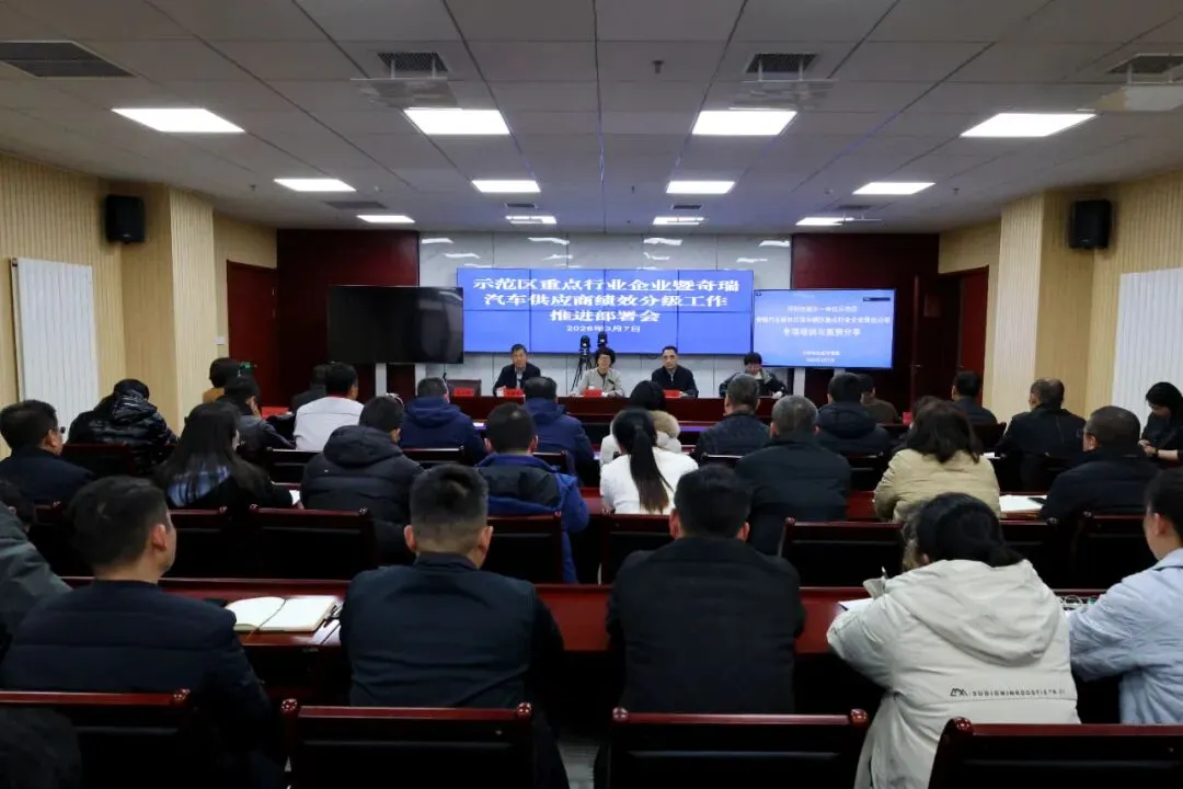 3月7日,示范区召开重点行业企业暨奇瑞汽车供应商绩效分级工作推进部署会,市生态环境局局长陈勇、示范区管委会主任郑红英参加会议并讲话。市生态环境局相关科室负责人、绩效分级技术专家、奇瑞商用车(安徽)有限公司河南分公司、奇瑞汽车河南有限公司等60余家重点企业代表参加会议,市生态环境局党组成员、副局长杨锦诚主持。