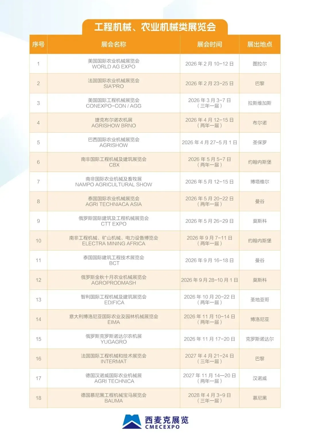 为深入贯彻党中央、国务院关于推动高水平对外开放的决策部署及省委、省政府工作要求,抢抓全球产业链供应链重构机遇,助力我省外贸企业深度开拓多元化国际市场,培育外贸竞争新优势,促进全省外贸稳规模优结构,省商务厅实施2026年“千企百展出海拓市场”行动,发布两批共238场境外展会名录。详见附件。