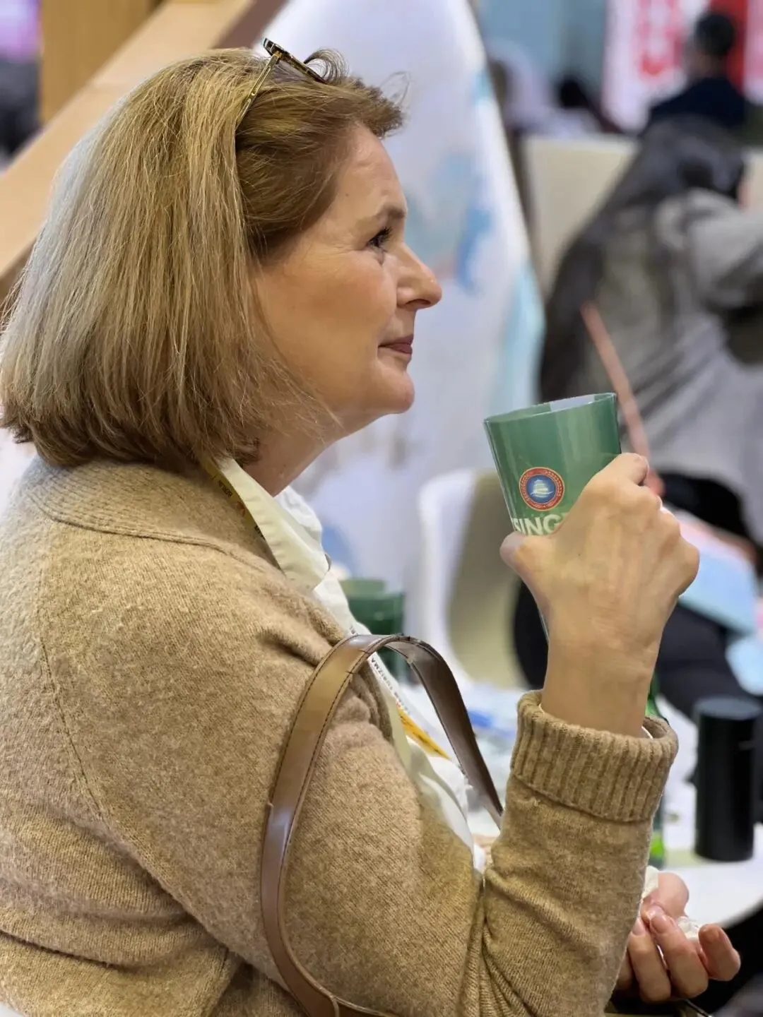 山东展台青岛啤酒体验区香气四溢,成为全场人气最旺的角落。作为中国啤酒行业的百年品牌,青岛啤酒早已成为山东走向世界的“液体名片”。工作人员为来宾斟满一杯杯金黄透亮的啤酒,搭配香脆啤酒豆等小吃,山东特色值飙升,瞬间拉近山东与世界的距离。