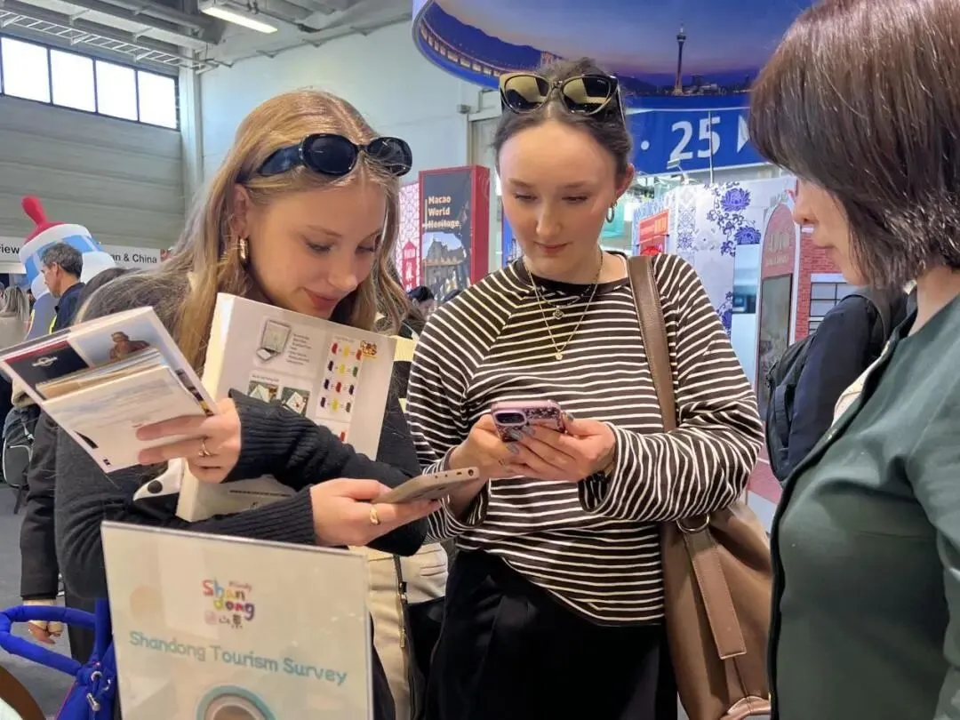山东首次使用NFC智能贴片形式,参观者只需用手机轻轻一贴,即可一键获取多媒体、全方位的山东文旅信息。这一举措不仅使用户实现从“被动阅读”到“主动获取”的体验升级,更是以数字化手段践行环保承诺。德国旅行商佛里克斯体验后评价:“这不仅是宣传品的‘数字进化’,更是一张通往山东的‘智能邀请函’”。