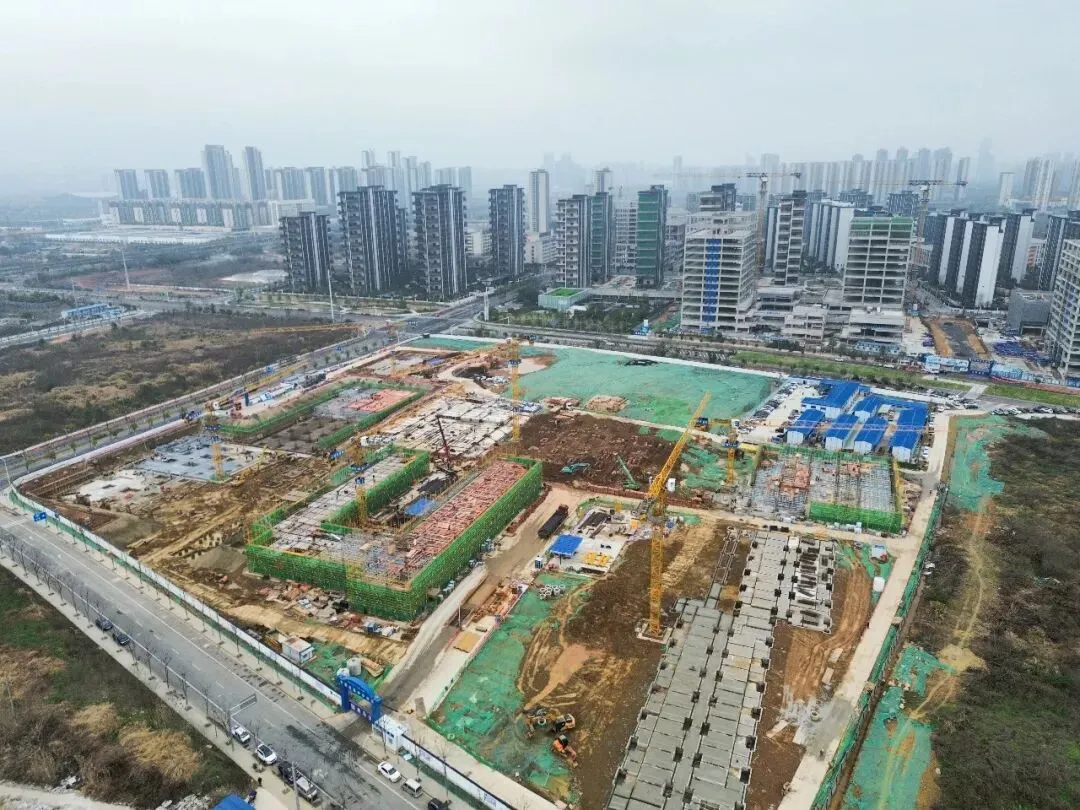 据悉,长郡会展中学是长沙市重点民生教育项目,规划办学规模90个班,项目建成后,将进一步完善区域教育配套体系,补齐优质教育资源供给短板。目前,项目1#、2#、6#、8#-10#栋已率先进入主体工程施工,地下室结构施工和主体结构工程均已完成35%任务量。