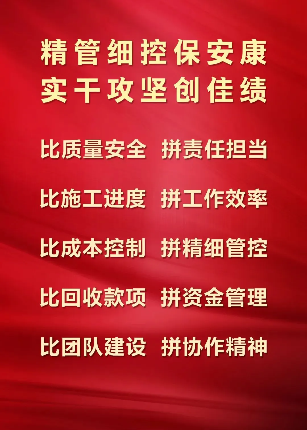 一是确保安全质量,全力抢抓进度。紧盯“6·30”节点目标,进一步优化施工组织,细化分解任务,强化工序衔接,科学调配资源,抢抓施工黄金期。务必坚守质量底线、筑牢安全防线,以品质履约擦亮六建品牌。