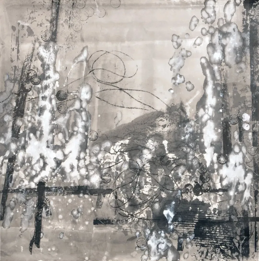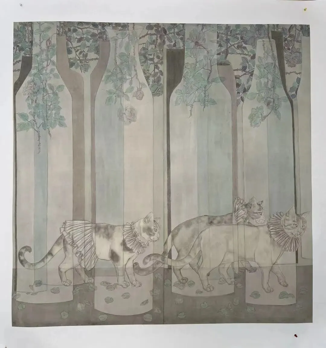 李春兰(李兰)《走出瓶颈的猫》 172cmx172cm 纸本设色