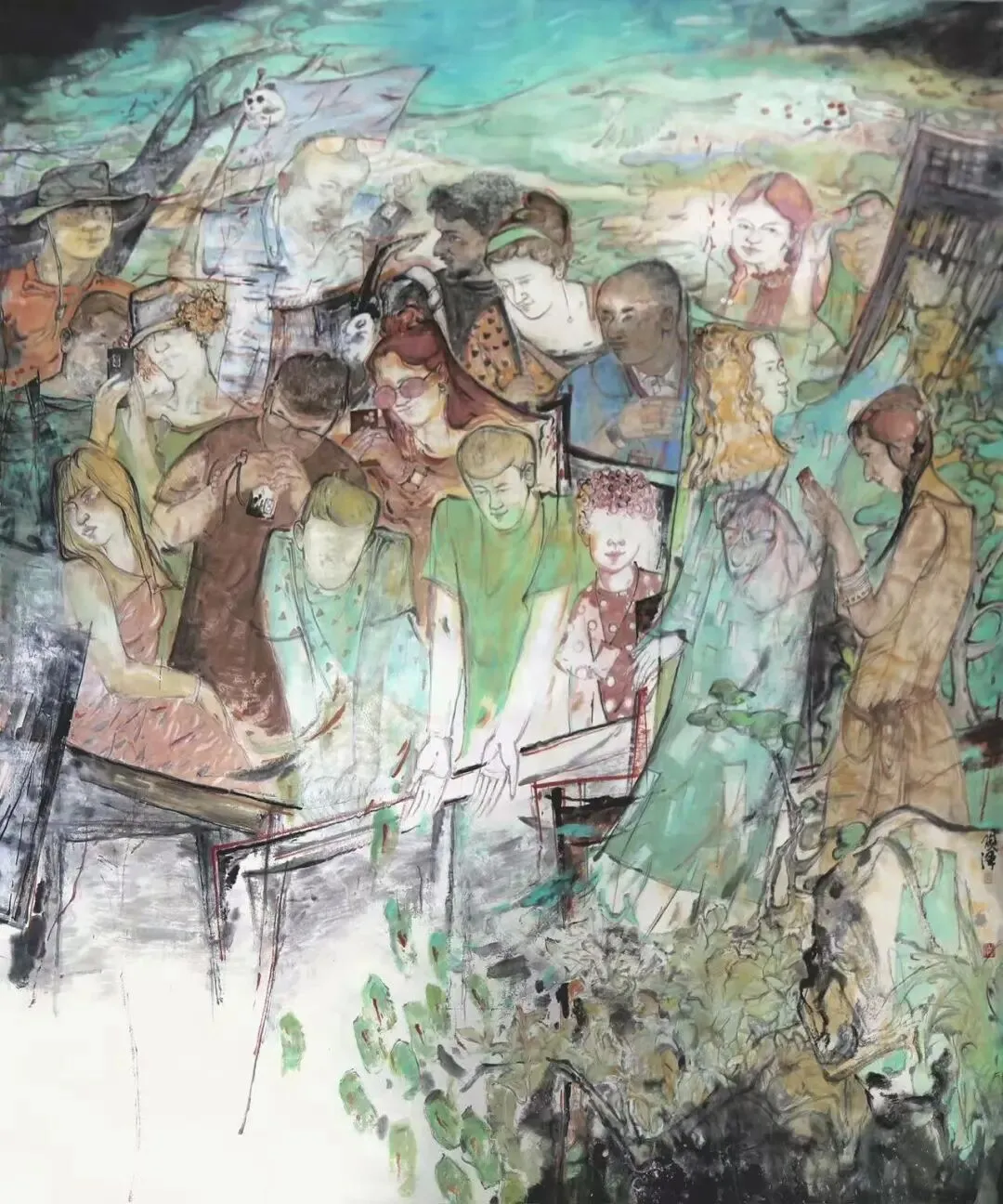 覃琨瑛又名阿覃,也姓STRAKOVA.现为中捷当代美术馆馆长及国际策展人、独立艺术家。1969年生于广西桂平市,1993年毕业于广西师范大学艺术系,1996年毕业于中央美术学院国画系并获硕士学位。1996年定居布拉格并于捷克查理大学任教。2012年得到捷克驻华大使馆的支持在北京创立中捷当代美术馆(Czech China Contemorary 简称CCC),2014年荣获欧洲文化艺术奖《第十四届欧洲TREBBIA文化艺术贡献奖》并于捷克总统府接受捷克总统颁奖,成为该奖项首位获奖华人。2008 作品入选“和平颂”---神舟七号太空飞行艺术之旅。至此共参加举办了22次个人展览并策划了16个国际交流展览。毛冬华 1971年生于上海,1995年毕业于上海大学美术学院。现为上海美术学院副院长,一级美术师,上海市美术家协会理事、中国画艺委会主任,中国工笔画学会理事及山水艺委会委员,上海中国画院兼职画师。毛冬华《诞生地》236cmx220cm 纸本设色 2024年毛冬华《帘.竹》150cmx85cm 纸本水墨 2024年杨娟(涓子) 大学教授,一级美术师,中国美术家协会会员,中国女画家协会理事,女艺术家创作研究会副秘书长,中国女子书画研究委员会常务理事兼国际委员会副会长,北京国博文化遗产研究院研究员,北京国画艺术家协会常务理事,北京荣宝斋特约画家,天津画院签约画家。杨娟(涓子)百米长卷《黄河魂》局部 纸本水墨 2000cmx180cm 2012年姚砚泽 山西省书画院(原山西画院)专职画家。中国美术家协会会员,中国女画家协会理事,山西师范大学外聘研究生导师,太原理工大学外聘研究生导师,山西省中国画学会副会长,山西省美术家协会理事,《中国书画》杂志社书画院特聘画家,李可染画院青年画家。卢禹君 哈尔滨师范大学美术学院服装设计系主任、教授、博士生导师。中国美术家协会会员、中国美协服装艺委会委员、中国女画家协会会员、中国纺织协会理事、中国服装设计师协会理事、中国流行色协会拼布色彩艺术研究委员会副主任、黑龙江黑龙江省美协服装艺委会主任、黑龙江省工笔画研究会副会长、黑龙江女画家协会副主席、黑龙江省艺术设计协会服装分会会长、哈尔滨女画家协会副主席、WCAA/ICAA国际艺术家协会理事、天津画院外聘画家。李春兰(李兰) 中国美术家协会会员,中国工笔画学会会员,河南省美术家协会人物画艺委会委员,洛阳市美协人物艺委会会员,洛阳市民盟盟员。
