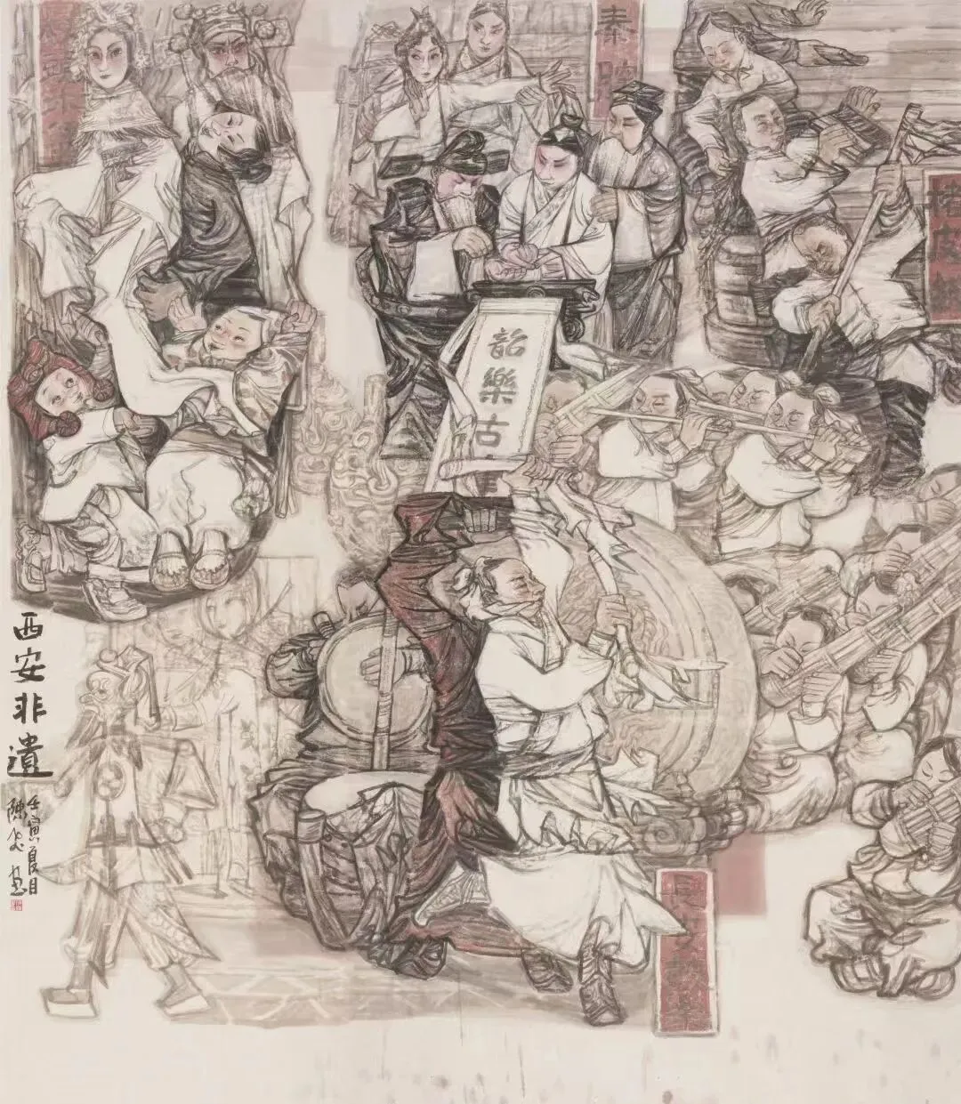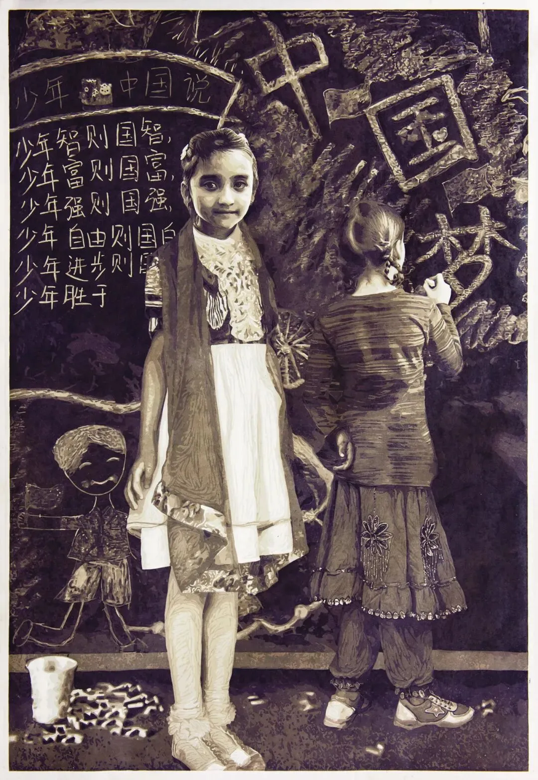 张艺《少年·中国梦》 110cm x 160cm 套色木刻