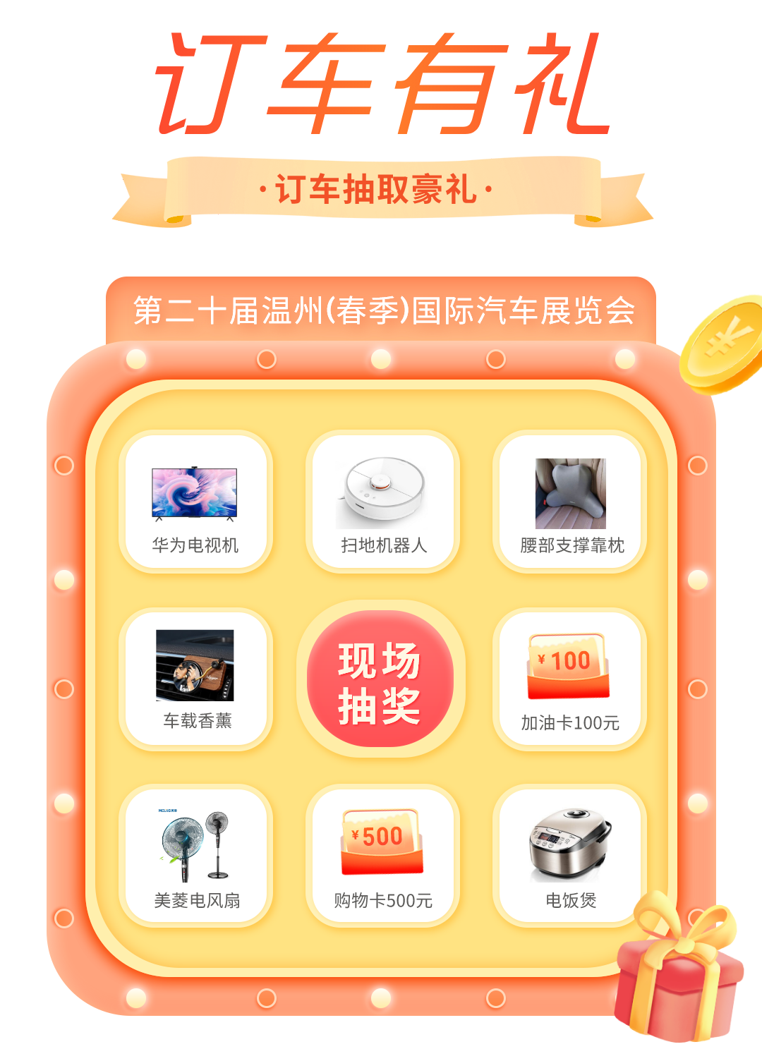 下定即可参与家电、车品等定车礼品抽奖