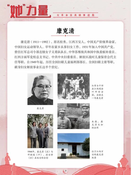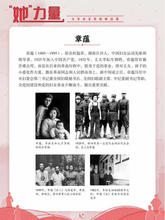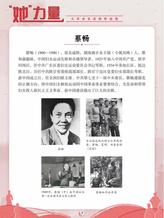 在现代以来的百余年奋进史中,更涌现出一大批视死如归的革命烈士、顽强奋斗的英雄人物、忘我奉献的先进模范,她们前仆后继,为争取民族独立、实现国家富强,或以鲜血浇灌理想,或用生命捍卫信仰。她们虽为女儿身,却巾帼不让须眉,将理想甚至生命铸进了人民革命这座伟大的历史丰碑。在中国,妇女节与革命传统紧密相连。自1924年中国第一次庆祝三八国际妇女节以来,该节日已经成为演绎中国百年妇女运动的特殊公共文化空间。