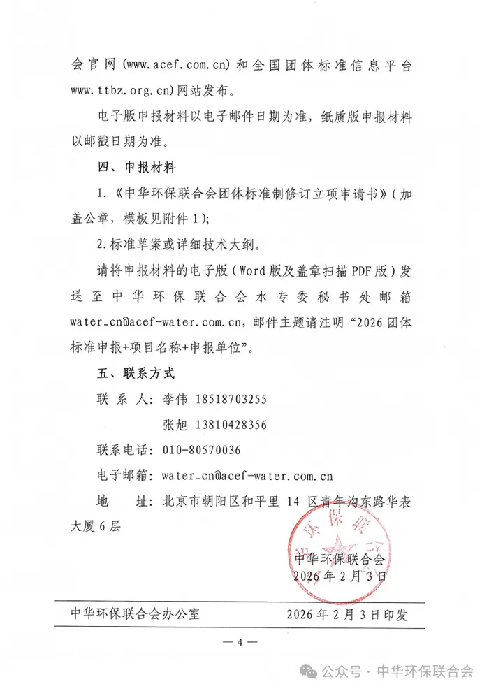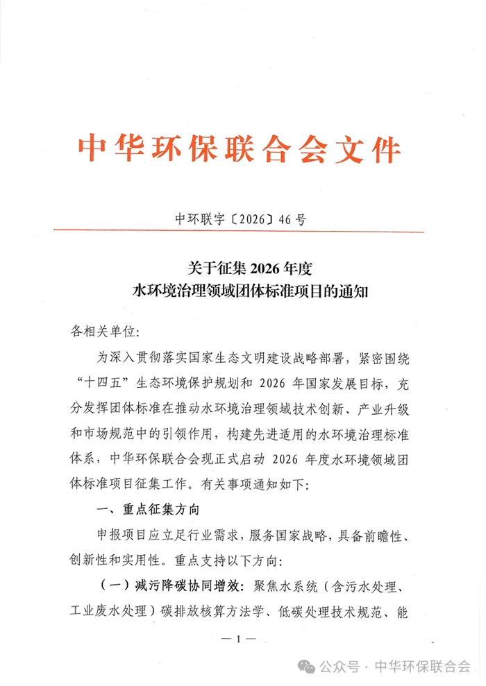 关于征集2026年度水环境治理领域团体标准项目的通知