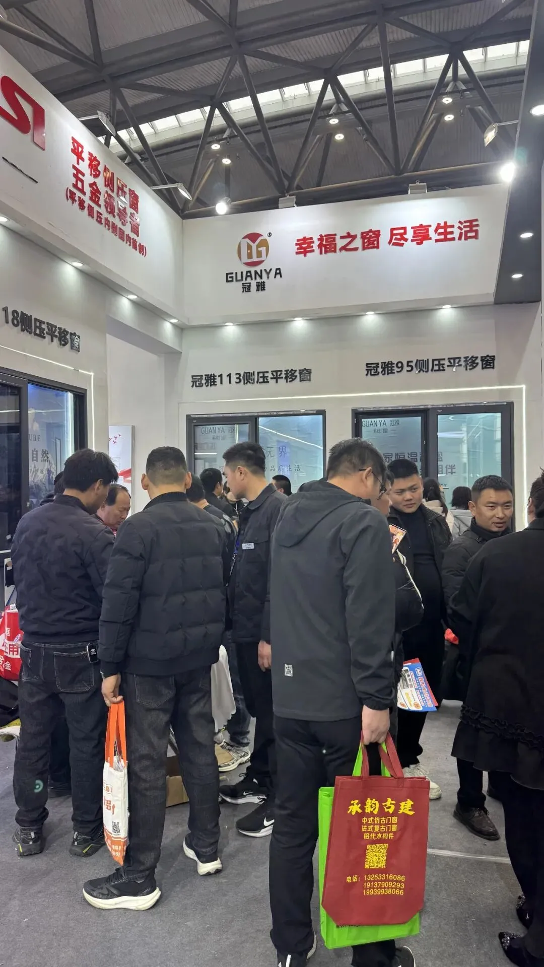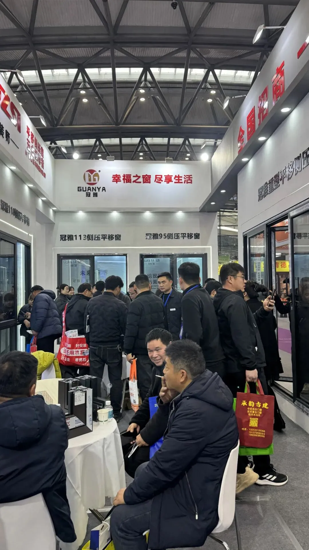 热度持续,客商云集。展会第三天,现场氛围依旧热烈。各展馆内人头攒动,来自全国各地的经销商、采购商及行业同仁穿梭其间,争相一睹行业前沿风采。【冠雅门窗】【N7-T23号】展位前更是水泄不通,团队成员以饱满热情为每一位到访者提供专业咨询,新品展示与高效对接双线并行,单日接待客户超百组,多项合作意向现场达成。