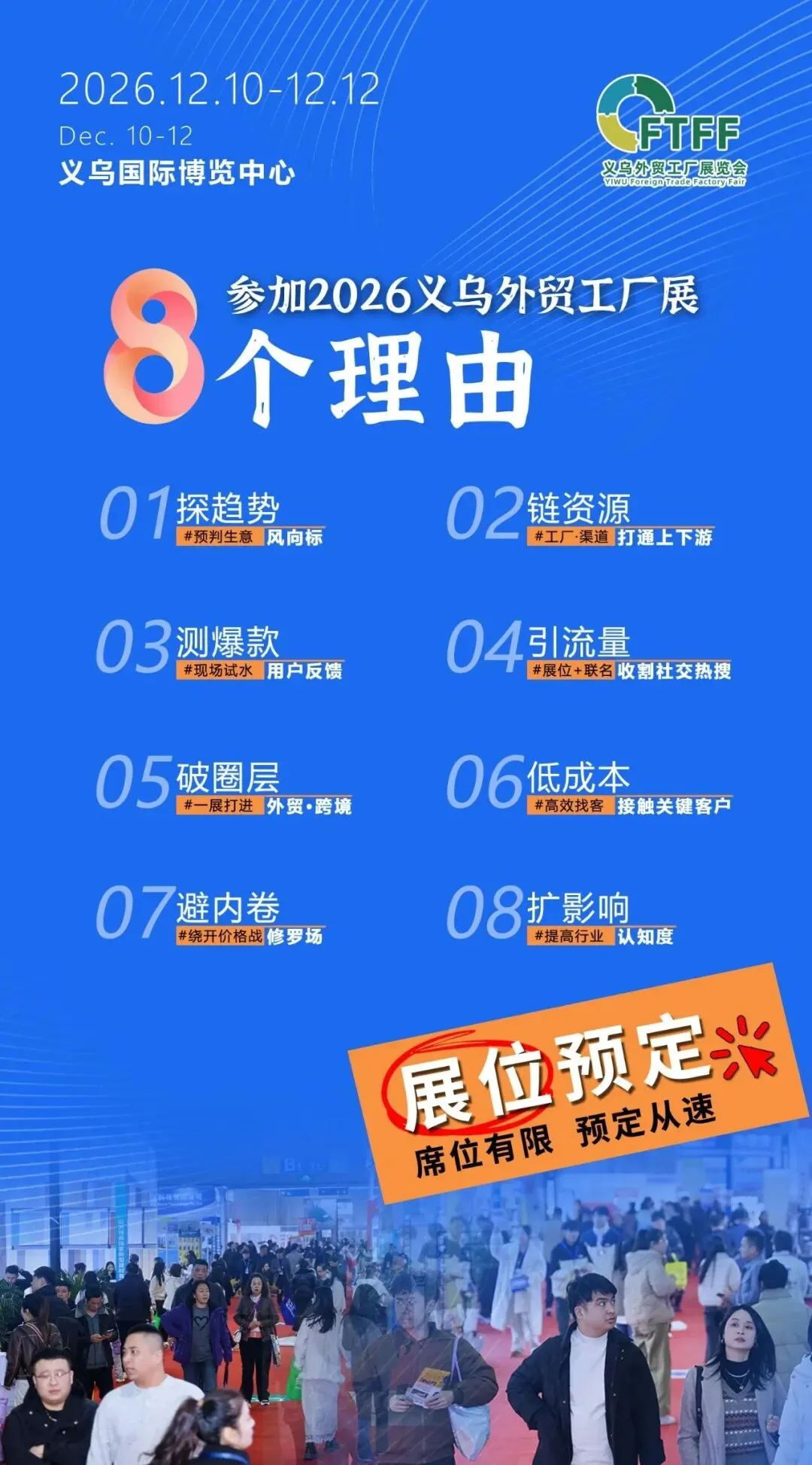 2026义乌外贸工厂展— 不止于展示,更致力于促成,构筑独特平台生态价值,赋能企业高效成长。一、展会核心信息