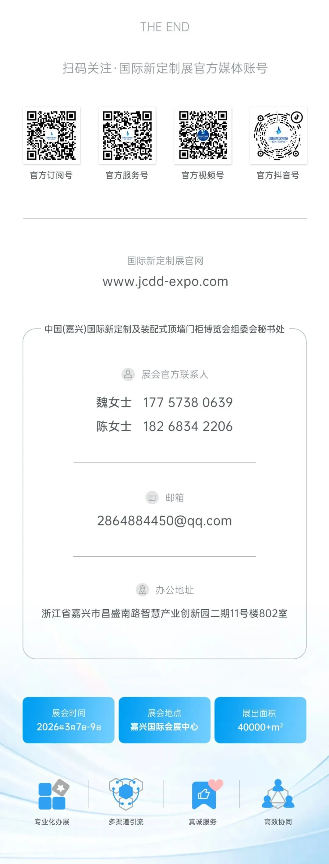 看直播、选品牌、逛展会,展会首日线上直播逛展大获成功,2026国际新定制展不仅覆盖顶墙集成、系统门窗、全屋定制、整家装配、智能家居系统、绿色新材料等全产业链环节,更是一场高端采购与加盟交流的行业盛会。3月8日-9日,欢迎您来现场感受展会盛况!