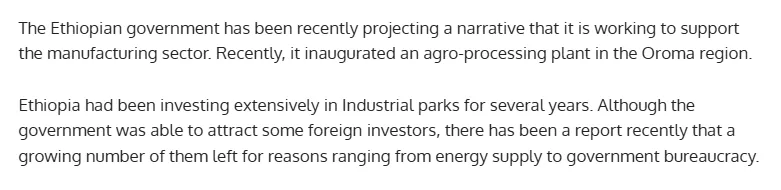 近年来,埃塞俄比亚持续加大对工业园领域的投入。尽管政府成功吸引部分外资进驻,但近期有报道指出,由于电力供应问题及政府官僚体制等因素,已有越来越多外资选择撤离。